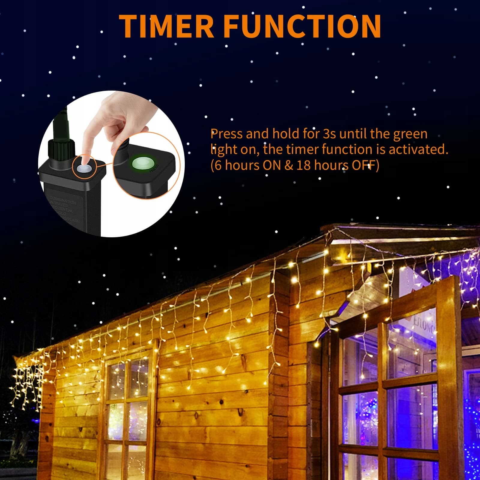 6-godzinny timer: Dzięki funkcji timera nie musisz wychodzić na zimno, aby odłączyć wtyczkę, lampki z efektem sopli lodu świecą automatycznie przez 6 godzin, a następnie wyłączają się na 18 godzin, odpowiednie do dekoracji wewnętrznych i zewnętrznych, idealne do dekoracji okapów dachowych, ogrodzeń, podwórek, ogrodów, balkonów, podwórek, werand i sypialni. (Wskazówka: funkcję timera można włączyć lub wyłączyć przez dwukrotne szybkie naciśnięcie przycisku.)