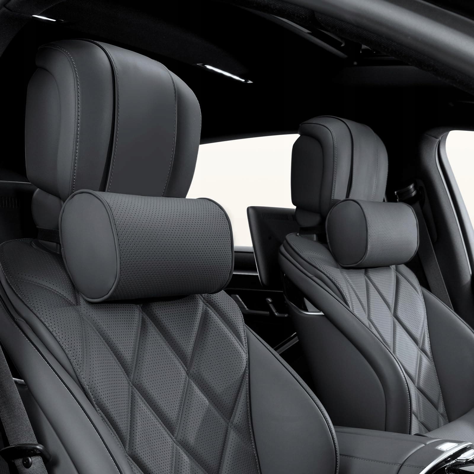 Dapucarin Poduszka na szyję do samochodu, miękka poduszka pod głowę ze skóry, 100% pianka memory i oddychająca zdejmowana pokrywa, poduszka podróżna do samochodu, domu i biura, czarna, 2 sztuki