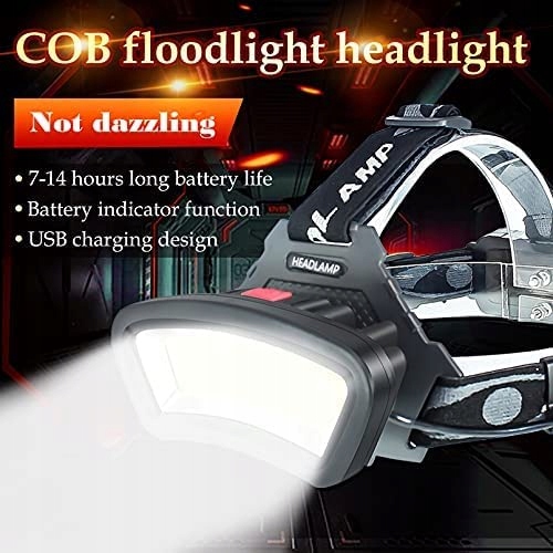 DARKBEAM COB Flutlicht Stirnlampe LED z czerwoną lampką, ładowana przez USB, jasność 2000 lumenów, wodoodporna latarka czołowa, do wędkowania, konserwacji i budownictwa, w zestawie z akumulatorami o żywotności 7-14h