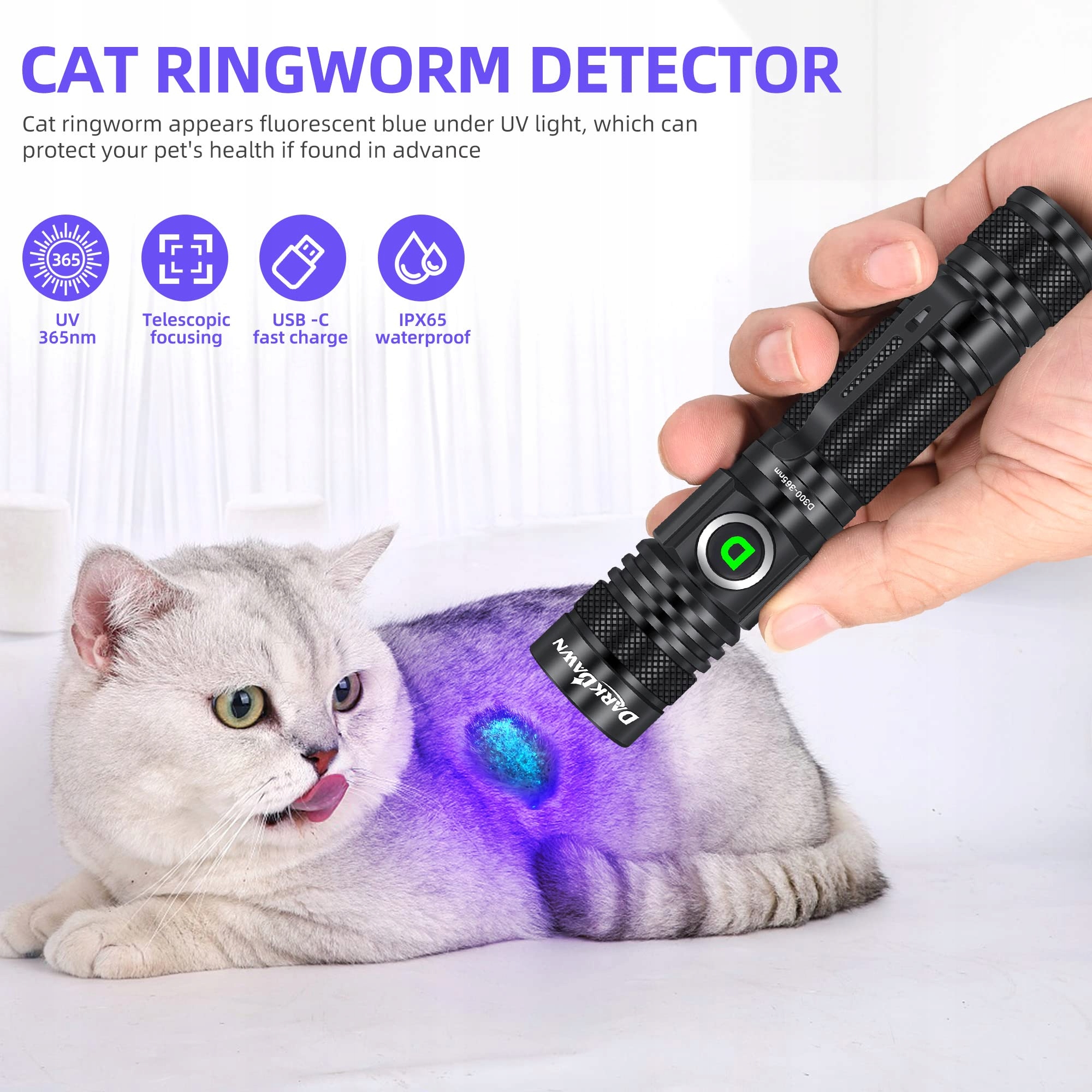 DARKDAWN Latarka UV 365nm USB Ładowalna Mini Detektor Urin Szkło 2szt