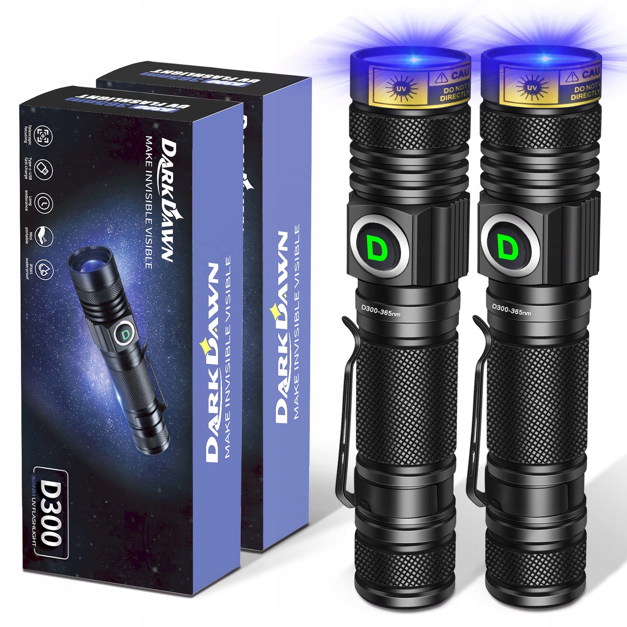 DARKDAWN Latarka UV 365nm USB Ładowalna Mini Detektor Urin Szkło 2szt | Premium Supply