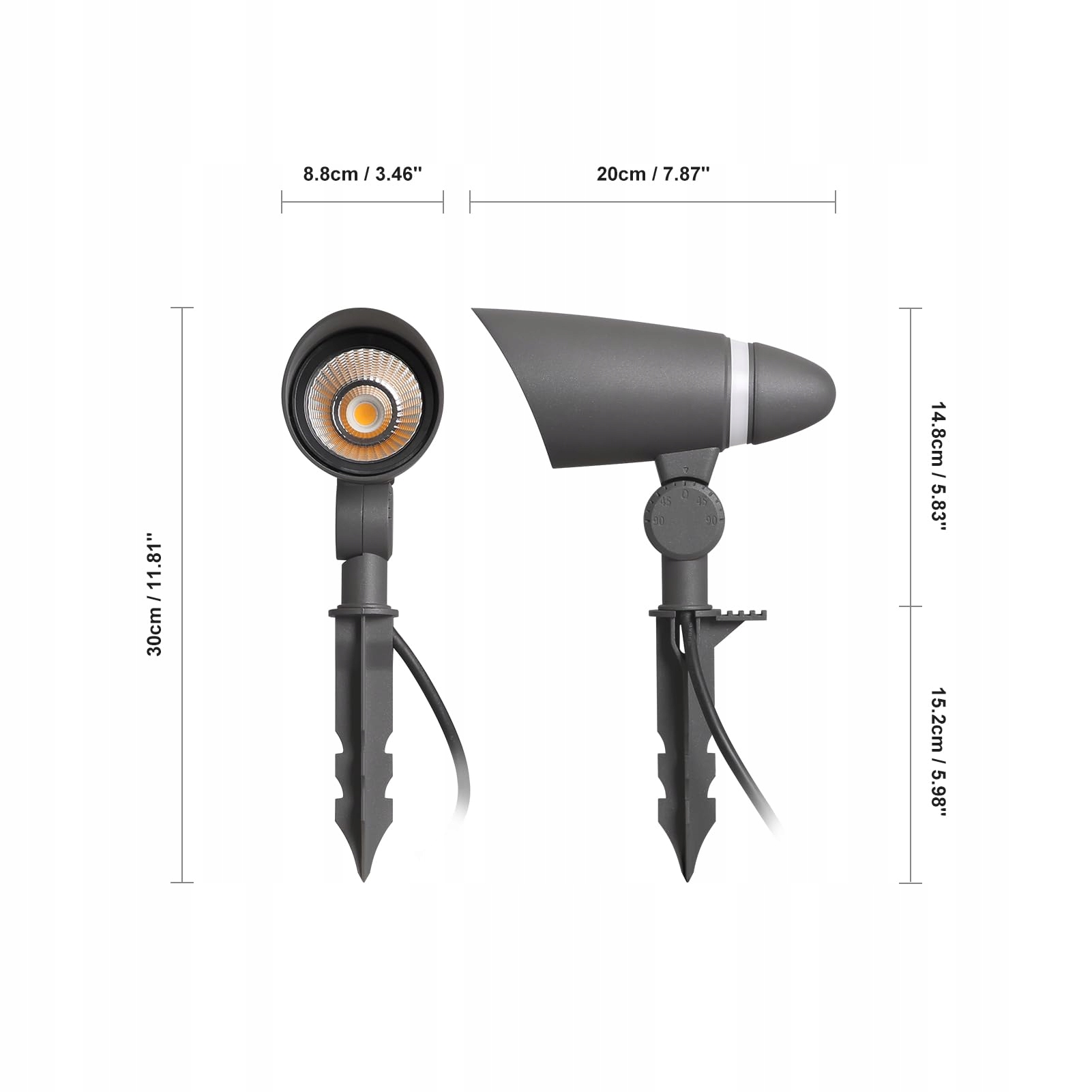 Trwałość: Całe oświetlenie krajobrazowe wykonane jest z aluminium, w tym część z kolcem. W przeciwieństwie do plastikowych kolców, aluminiowy kolec pozwala swobodnie wbijać go w twardszą ziemię, a także zapewnia ładną odporność na kurz i rdzę.