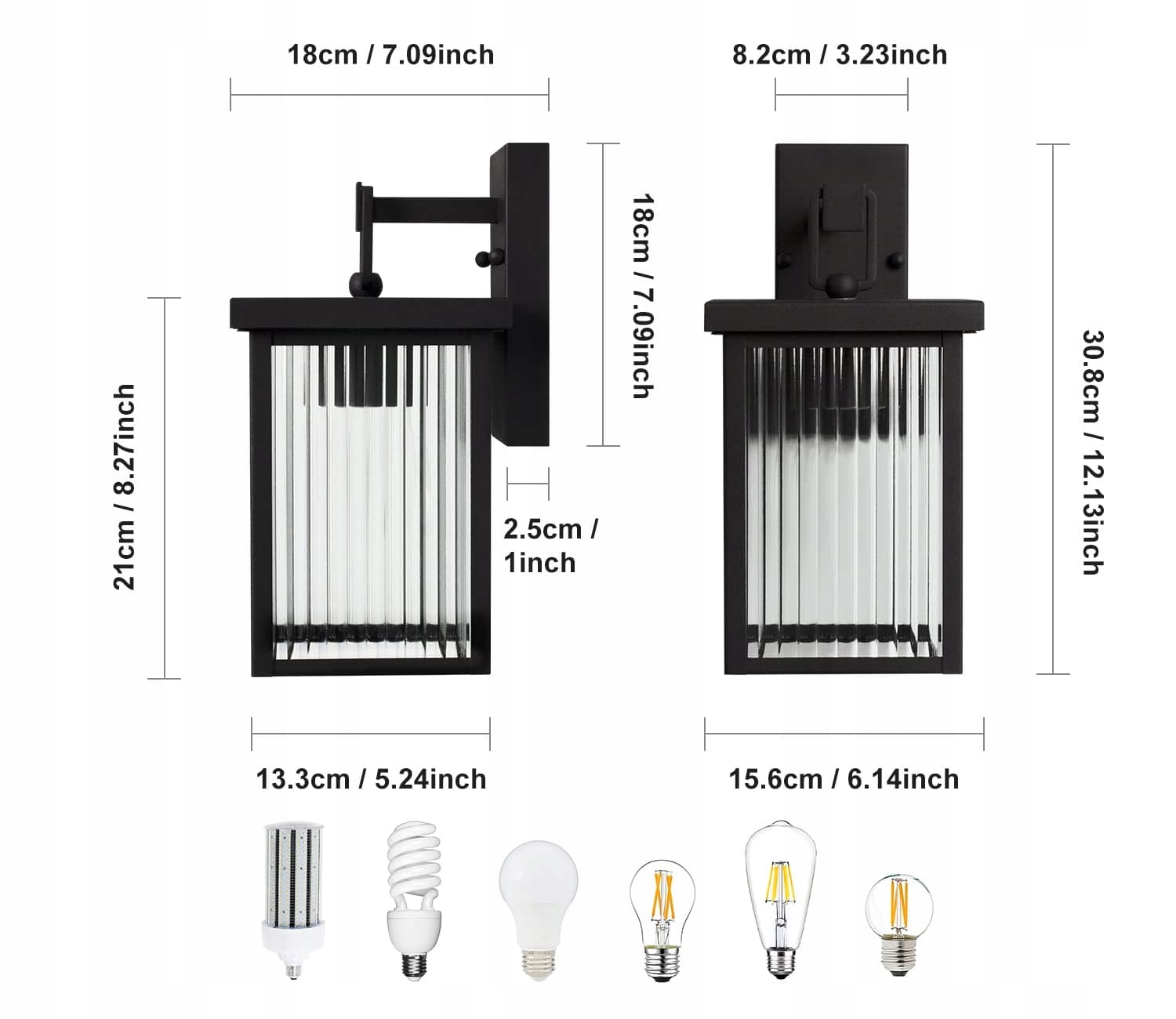 Łatwa instalacja: Wszystkie elementy montażowe tej lampy ściennej są dołączone, co umożliwia szybką i prostą instalację. Otwarta dolna część pozwala na łatwą wymianę żarówki. Całkowity rozmiar lampy: 307 mm/12,09 cala wysokości, 155 mm/6,1 cala szerokości i 178 mm/7 cali od ściany; rozmiar tylnej płyty to 181 mm/7,13 cala wysokości i 82 mm/3,23 cala szerokości.