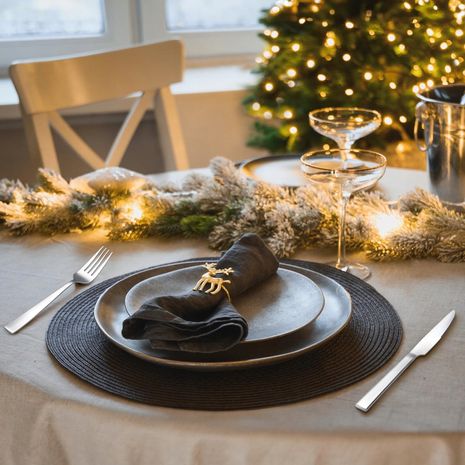 100% stal nierdzewna: Nasz zestaw sztućców wykonany jest z wysokiej jakości stali nierdzewnej, która jest bardzo trwała, odporna na korozję i rdzewienie oraz nie pozostawia resztek ani zapachów jak inne materiały. Ponadto nasze zestawy sztućców są solidne i trwałe, co zapewnia, że nie tylko nie łatwo się wyginają, ale także oferują długoterminowe użytkowanie