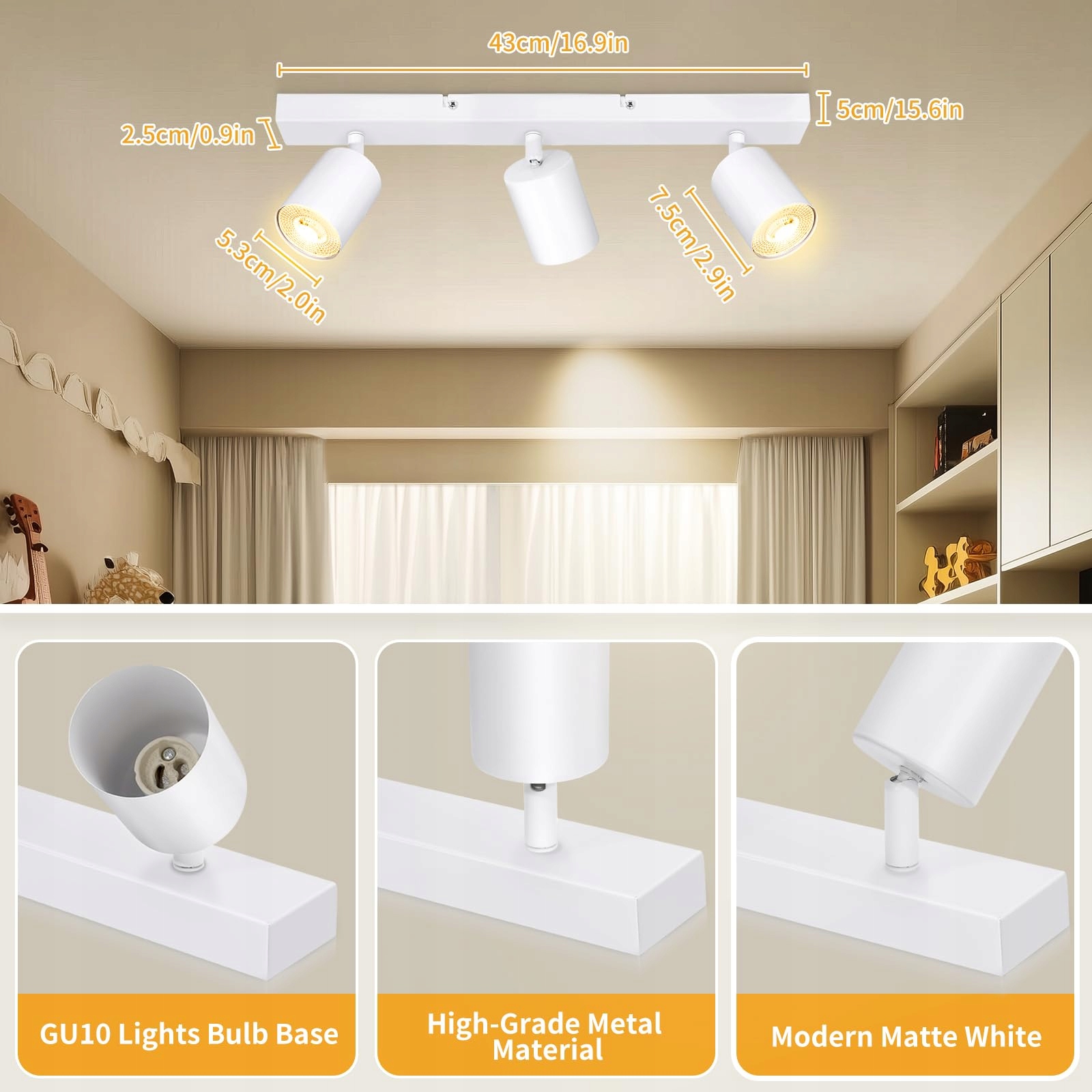 【Żarówki nie wchodzą w skład zestawu】Żarówki GU10 nie są dołączone do zestawu. Możesz wybrać swoje ulubione żarówki GU10 do dostosowania. Kompatybilna z zwykłymi żarówkami LED lub halogenowymi, moc każdej żarówki GU10 nie przekracza 50W