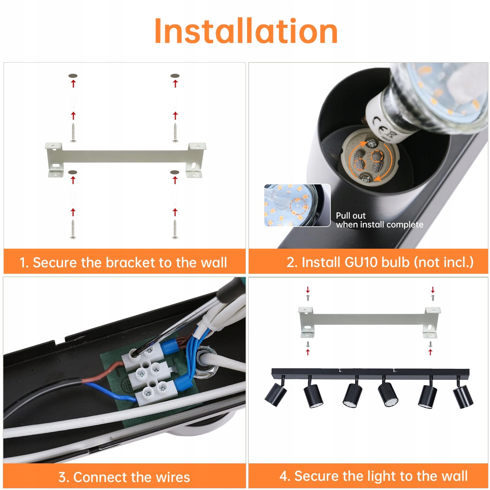 【Żarówki nie wchodzą w skład zestawu】Żarówki GU10 nie są dołączone do zestawu. Możesz wybrać swoje ulubione żarówki GU10 do dostosowania. Kompatybilna z zwykłymi żarówkami LED lub halogenowymi, moc każdej żarówki GU10 nie przekracza 50W