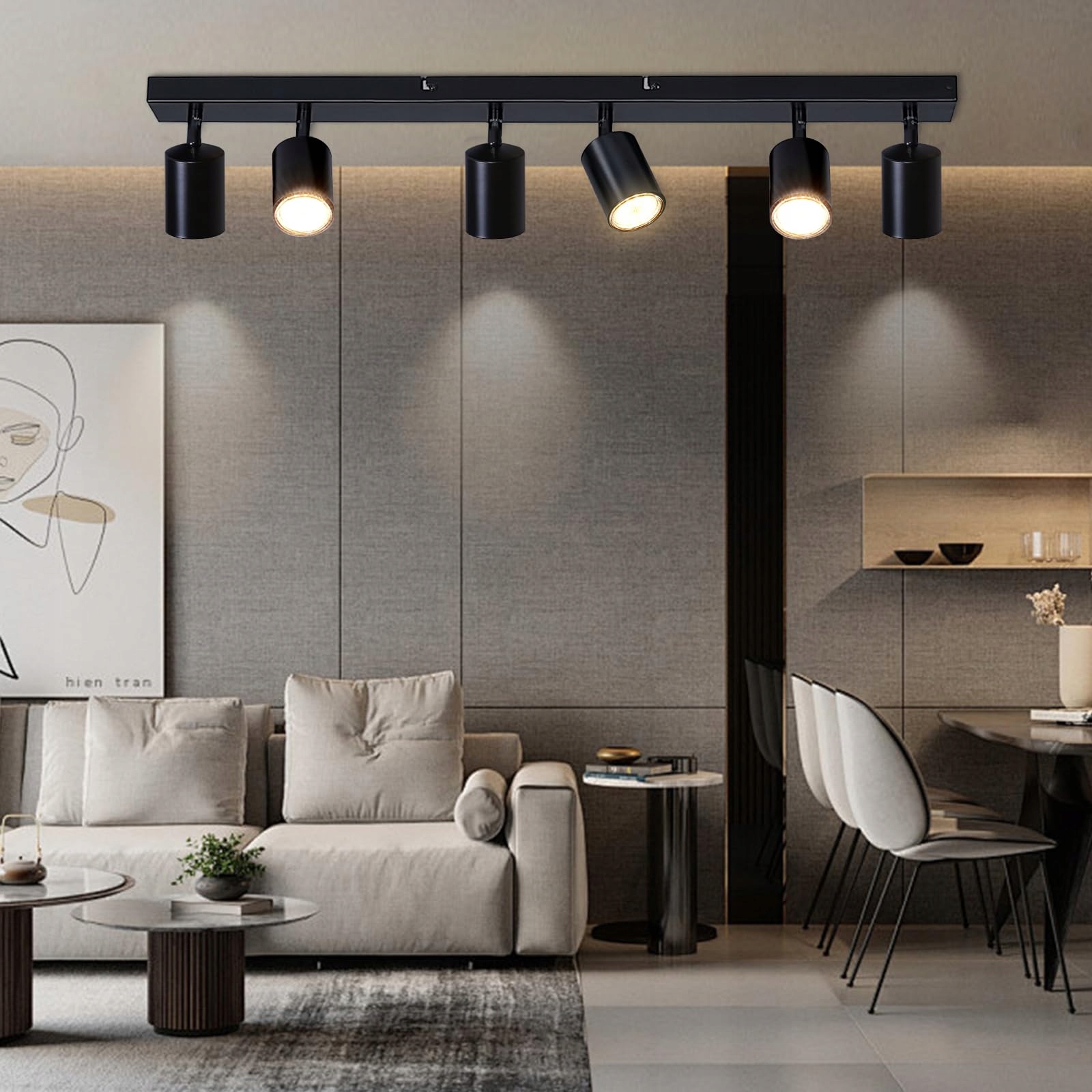 Dehobo Led Sufitowy Reflektor Obrotowy 350° 6-punktowa Lampa Sufitowa GU10 - Reflektor Ścienny Czarny - Lampa Punktowa Sufitowa do Salonu Sypialni Kuchni, Nie GU10 Żarówki