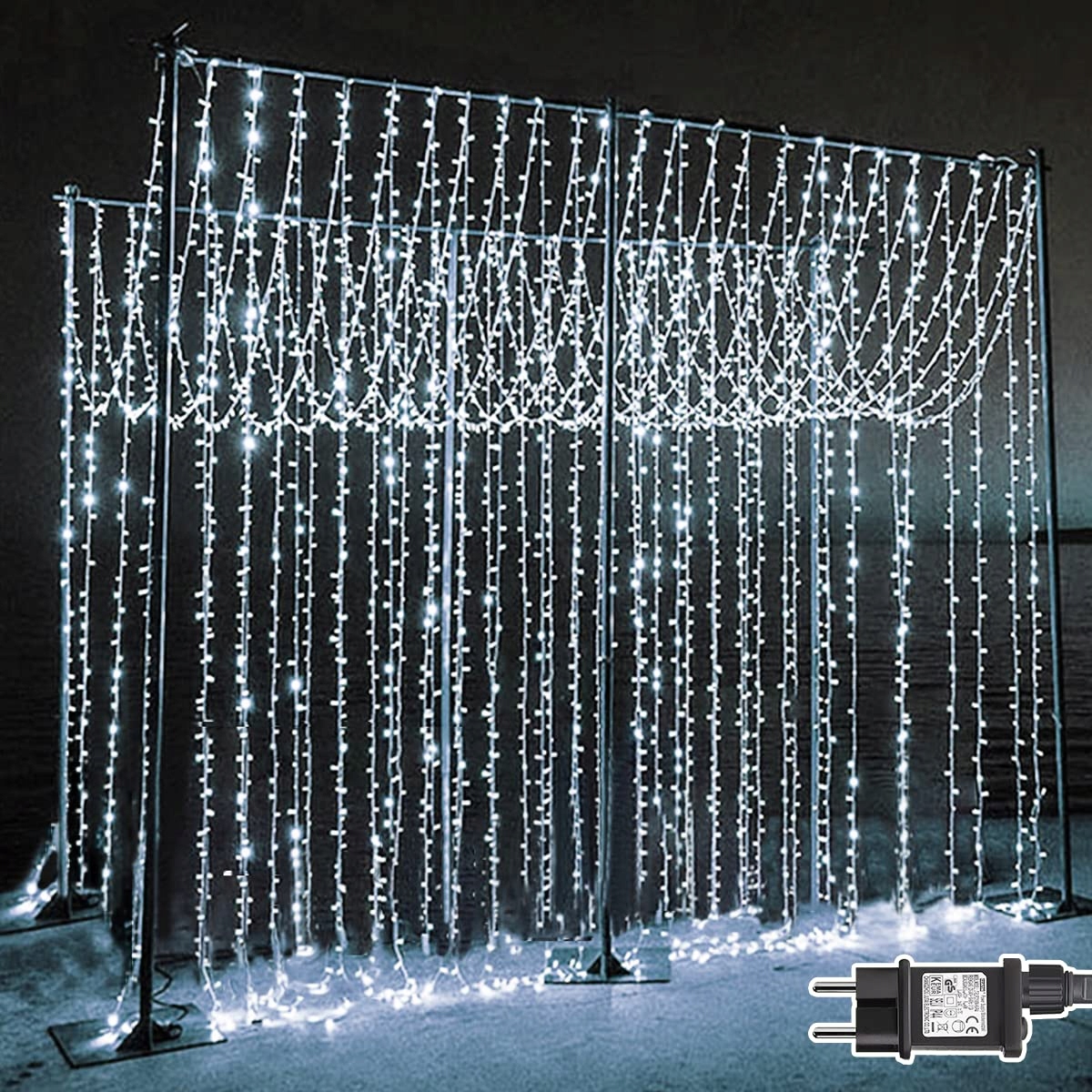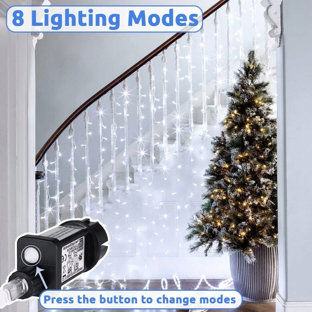 IP44 wodoodporny - Kurtyny świetlne są wodoodporne IP44, całkowicie uszczelniony design umożliwia korzystanie z kurtyn świetlnych na zewnątrz przez cały rok! Dzięki niskonapięciowemu wyjściu 31V, wodospadowe kurtyny świetlne zawsze pozostają chłodne, co czyni je idealnym dodatkiem na każdą okazję