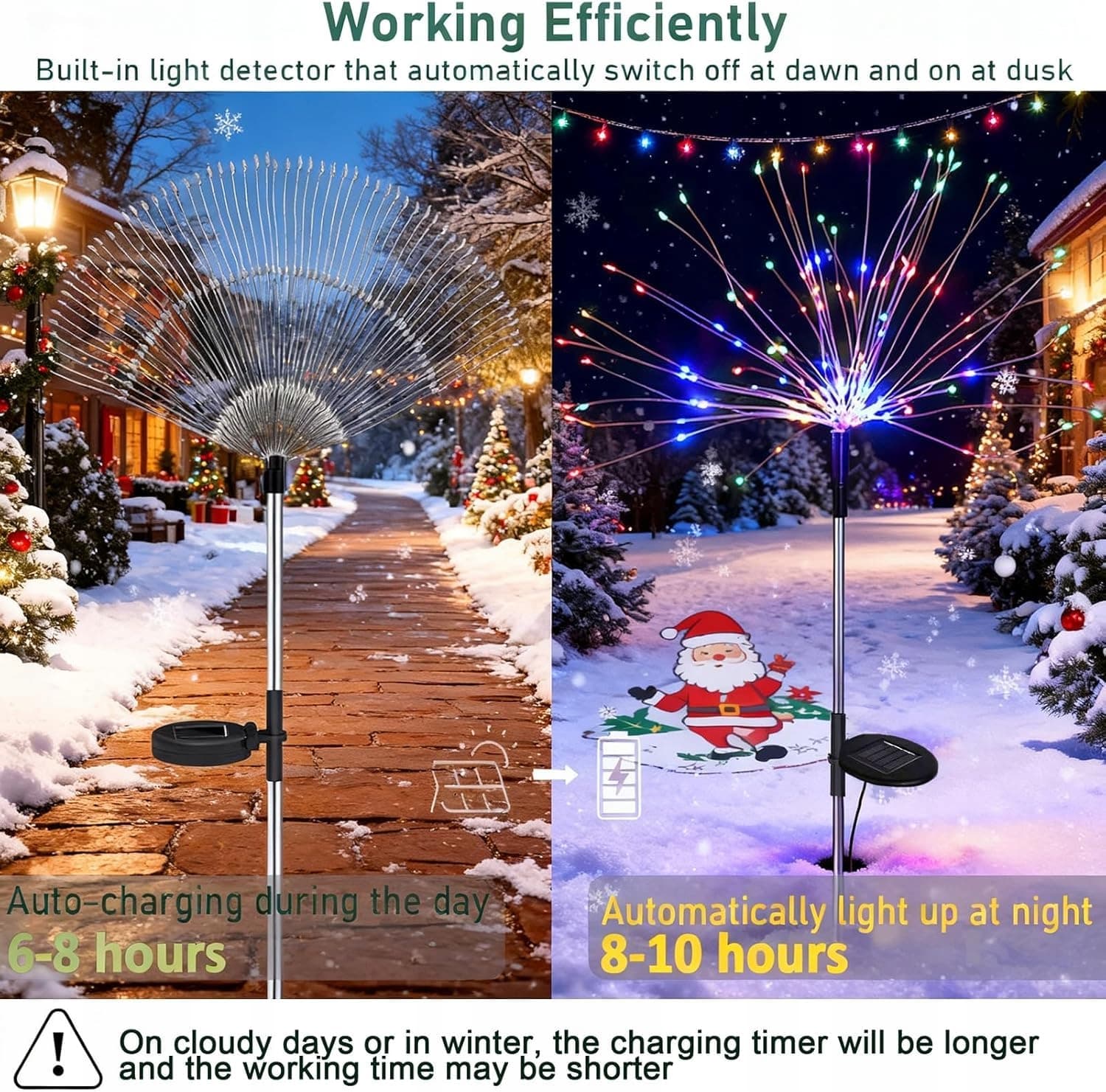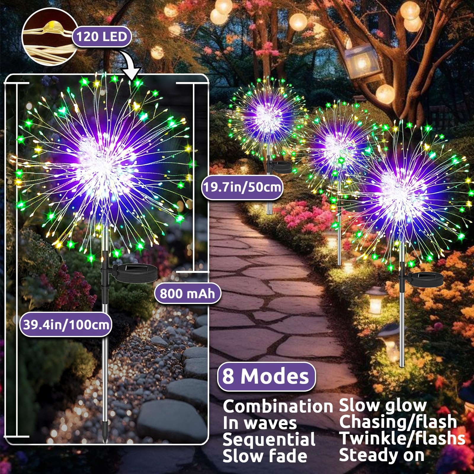 Ulepszona dekoracja ogrodowa i dłuższy czas pracy - zewnętrzne oświetlenie świąteczne solarne wykonane jest z 40 elastycznych, wysokiej jakości miedzianych drutów, liczba diod LED na każdą lampę fajerwerkową została zwiększona z 105 do 120 LED, a bateria została ulepszona z 600mAh do 800mAh, aby te solarne lampy dmuchawce do ogrodu stały się czymś, co pokochasz.