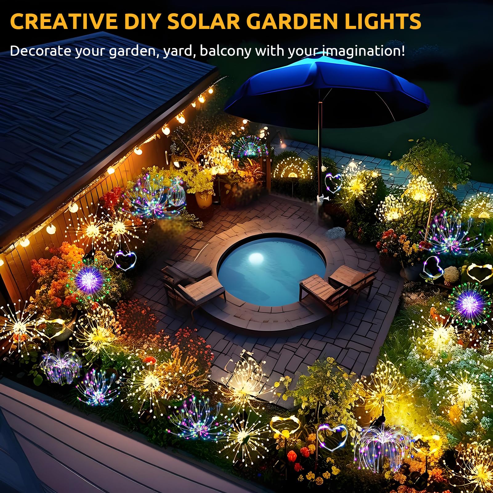 Własnoręcznie wykonane piękne dekoracje ogrodowe - dekoracje solarne do ogrodu są wyposażone w ulepszony wysokiej jakości miedziany drut, który można wyginać w dowolny kształt, na przykład fajerwerki, serca, latarnie, idealne do ogrodu, trawnika, ścieżki, podwórka, dekoracji ślubnych. Przygotuj się na zbieranie komplementów.