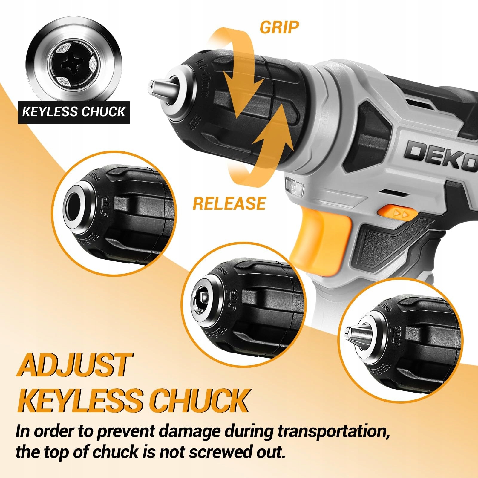 DEKOPRO Wkrętarka akumulatorowa 8 V - Szara Wiertarka akumulatorowa do wiercenia i dokręcania/odkręcania śrub, Zestaw bitów z szybkozłączem 3/8 cala (0,95 cm), wbudowana dioda LED, kabel C, 42-elementowy zestaw akcesoriów
