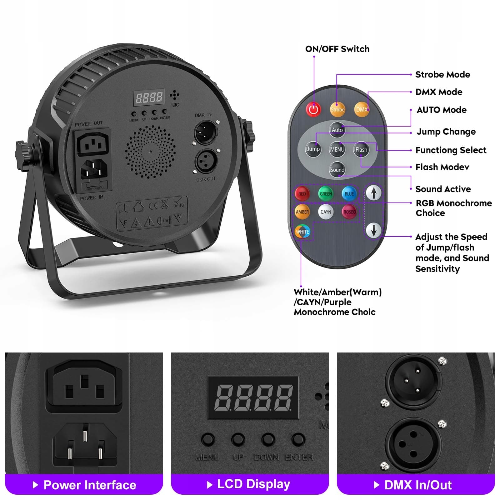 💡【Wysokowydajny reflektor LED Par】14 *6 W RGBW 4-w-1 diody świetlne o łącznej mocy 100 W oraz liniowa funkcja ściemniania i blokady światła od 0 do 100 %, co pozwala na nieskończone mieszanie kolorów o wysokiej wydajności oraz efekt świetlny tęczy na scenie lub imprezie.