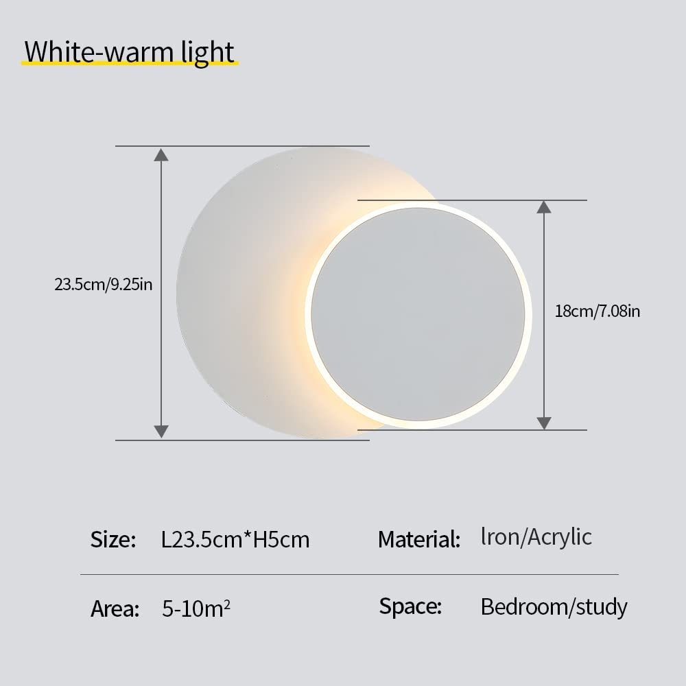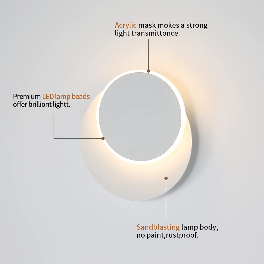 DELIPOP LED Lampa ścienna do wnętrz, 12W Kreatywna lampa ścienna 2 w 1 Obracana o 360°, Biała Okrągła lampa LED 3000K Ciepła biel do salonu, sypialni, schodów, hotelu