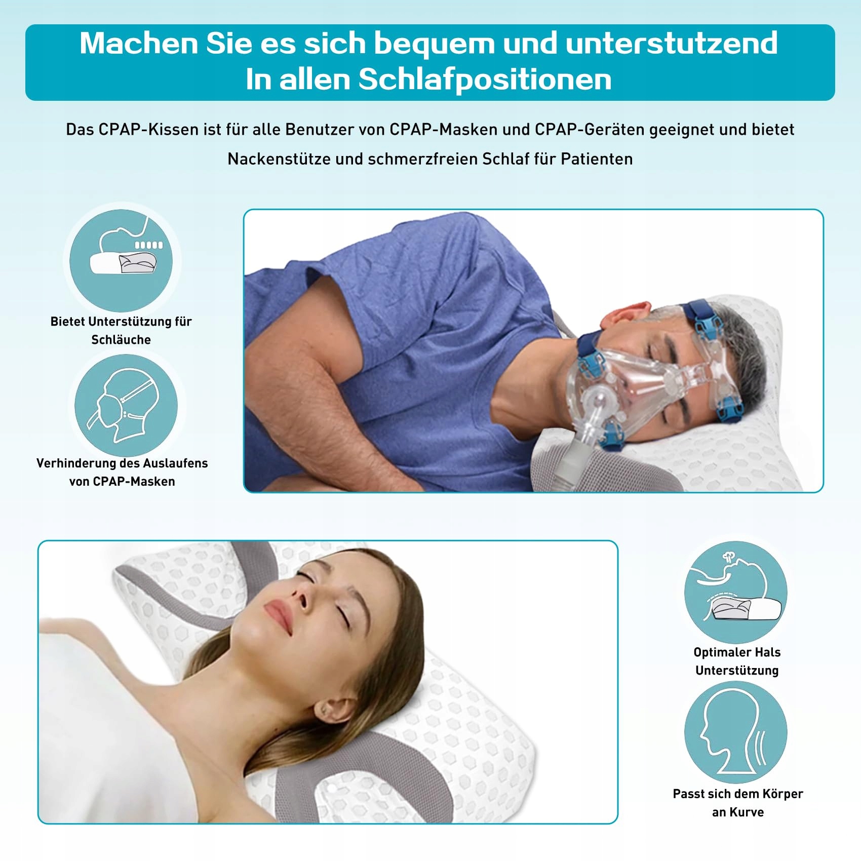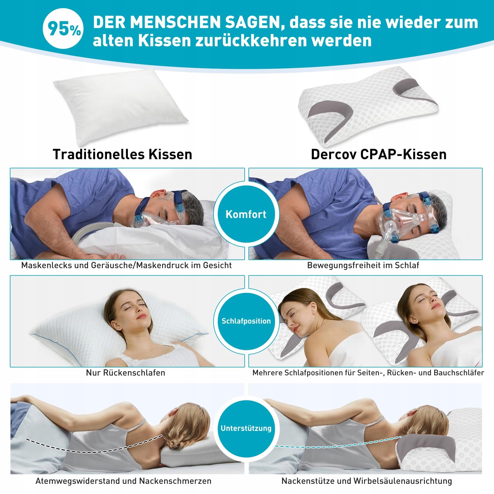 DERCOV Poduszka CPAP Dla Wszystkich Rodzajów Masek Pianka Memory Apnea