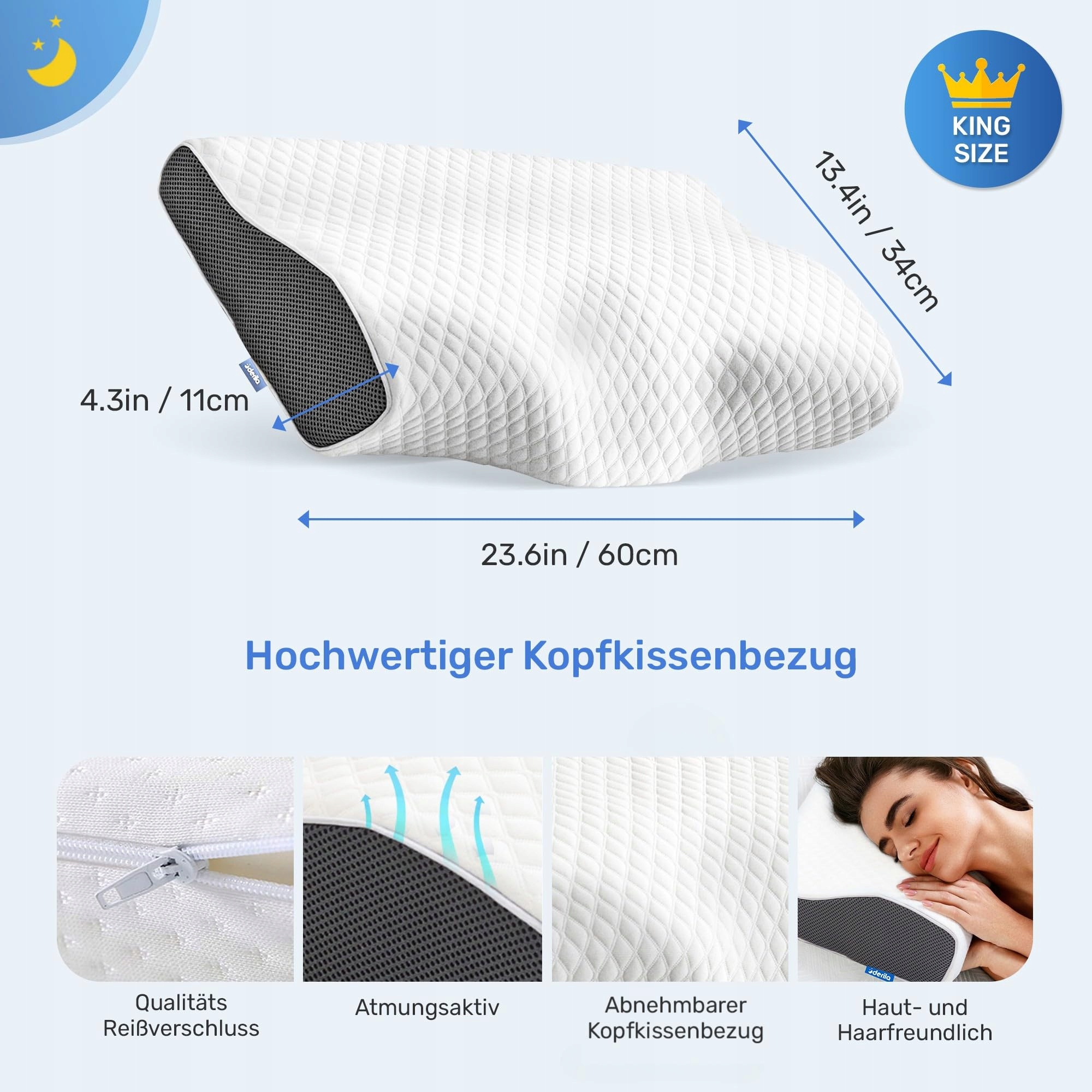 Derila Poduszka na szyję, poduszka z pianki memory foam oryginalna. Poduszka wspierająca szyję, poduszka dla śpiących na boku, plecach i brzuchu (King, 1 szt.)
