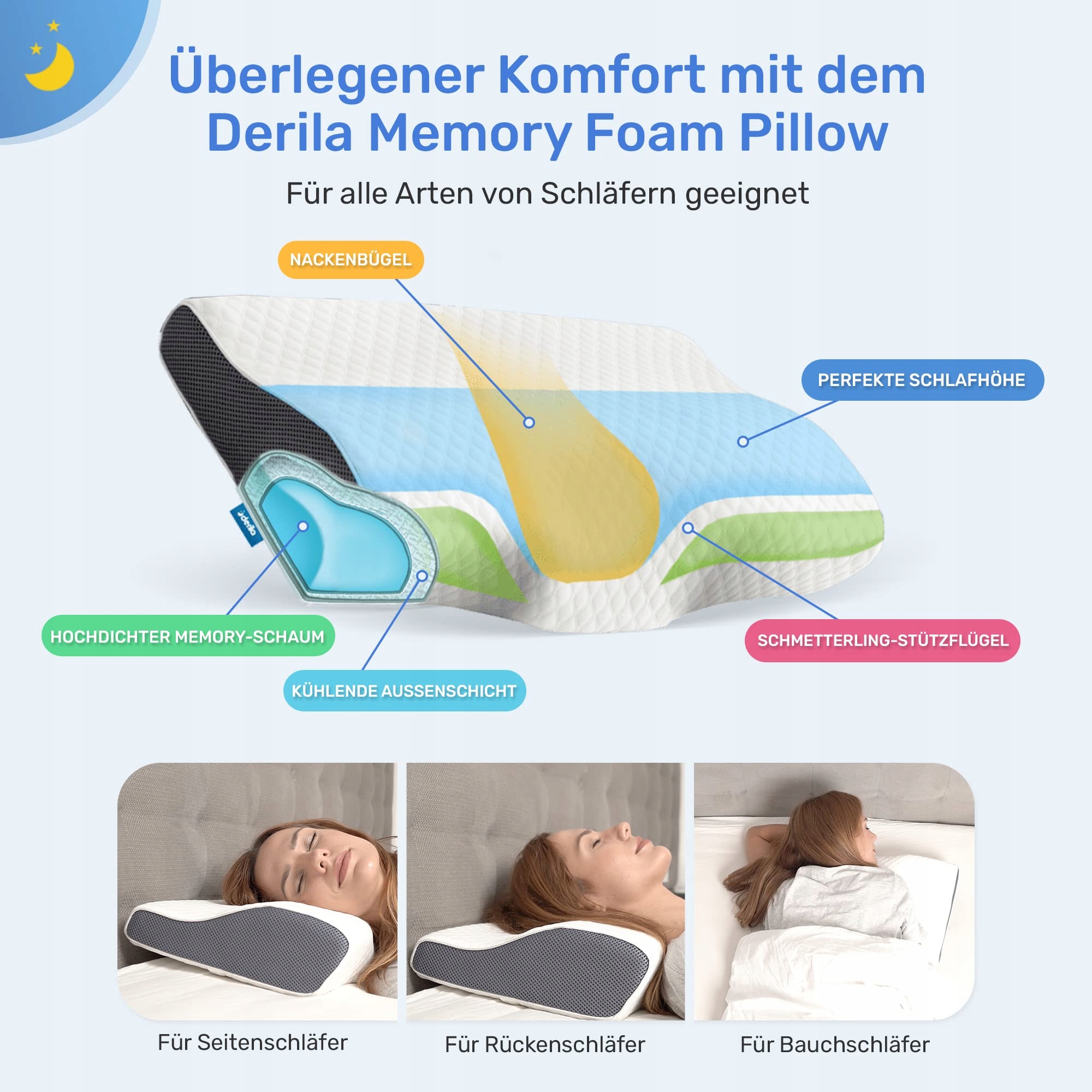 DERILA Poduszka Ortopedyczna Z Pianki Memory Dla Każdego Typu Snu Wersja 1