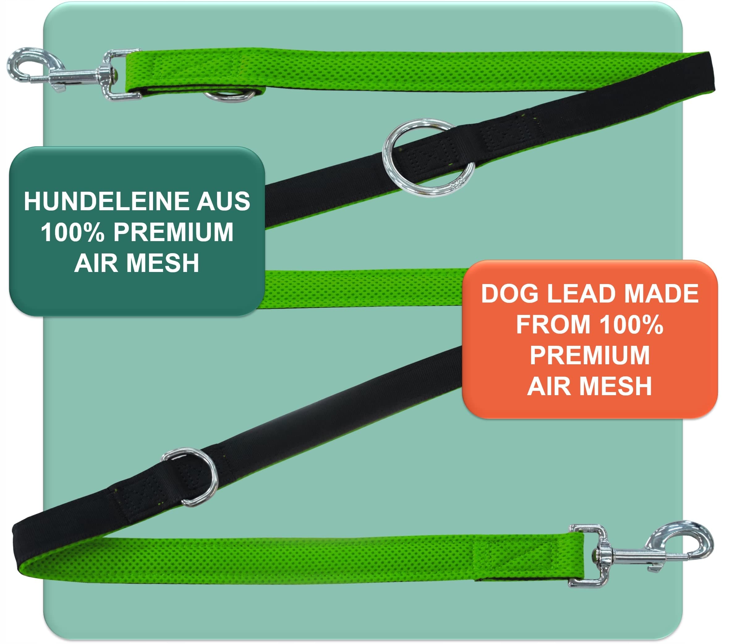 DEY - Premiumowa smycz dla psa Air Mesh 2m | 3-krotnie regulowana | dla małych, średnich i dużych psów | wiele kolorów | podwójna smycz dla psa i kota | smycz treningowa | smycz prowadząca | smycz dla szczeniąt | Zielony, XS
