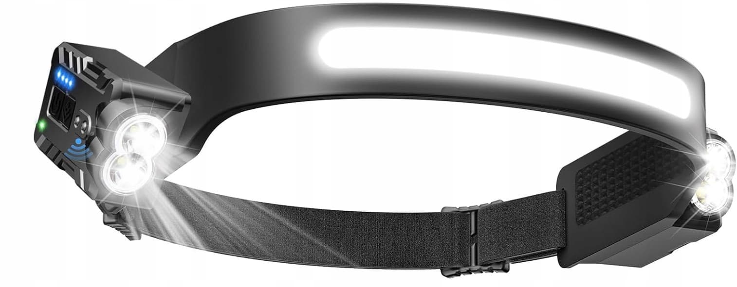 DIBONIUR Latarka Czołowa LED Wodoodporna IPX4 8 Trybów Czujnik Ruchu | Premium Supply