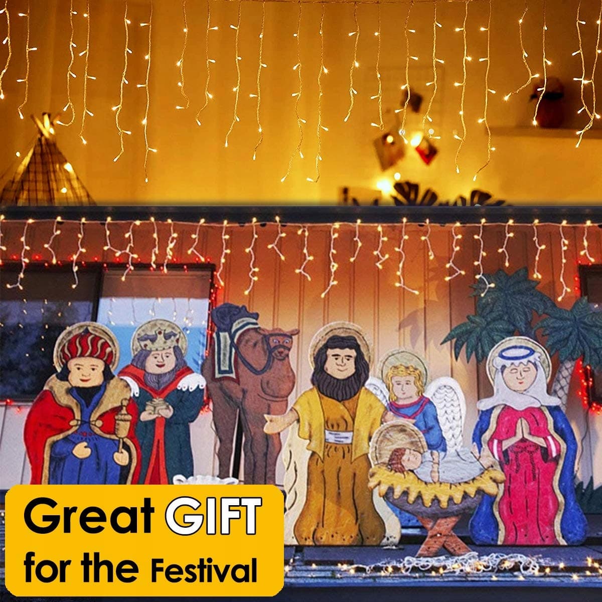 [Łatwy w instalacji i użytkowaniu] LED sopel lodu zasłona świetlna ma 5,5 m długości i 36 łańcuchów świetlnych. Długość wtyczki do pierwszej lampki wynosi 3 m, co jest wystarczająco długie, aby było wygodne. Możesz zmieniać tryb za pomocą tylko jednego przycisku.