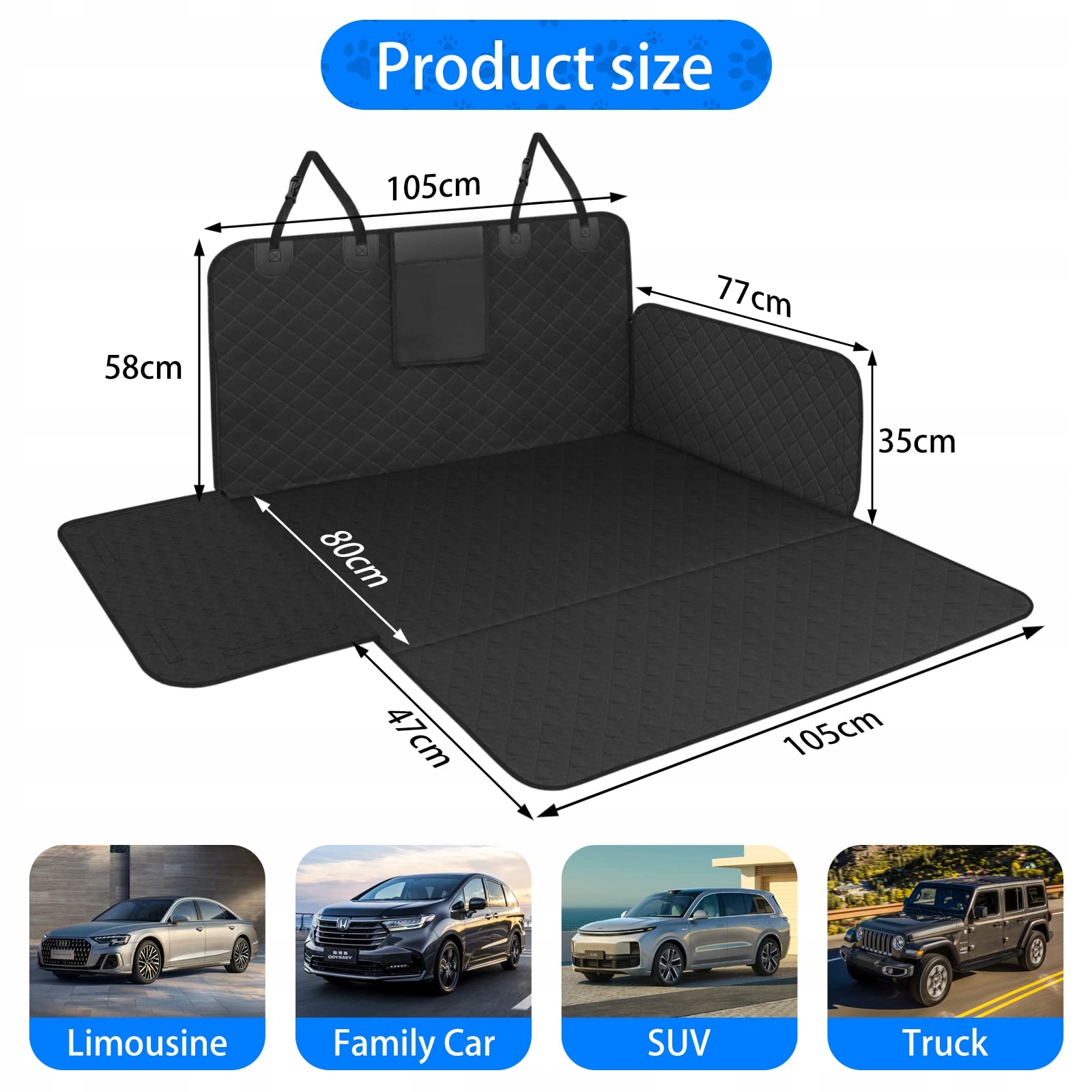 🐕[Łatwa do czyszczenia ochrona bagażnika dla psa] Dzięki tkaninie Oxford wystarczy wilgotna ściereczka, aby całkowicie usunąć kurz, sierść zwierząt i inne zanieczyszczenia z maty ochronnej do bagażnika dla psa. Można prać w pralce.