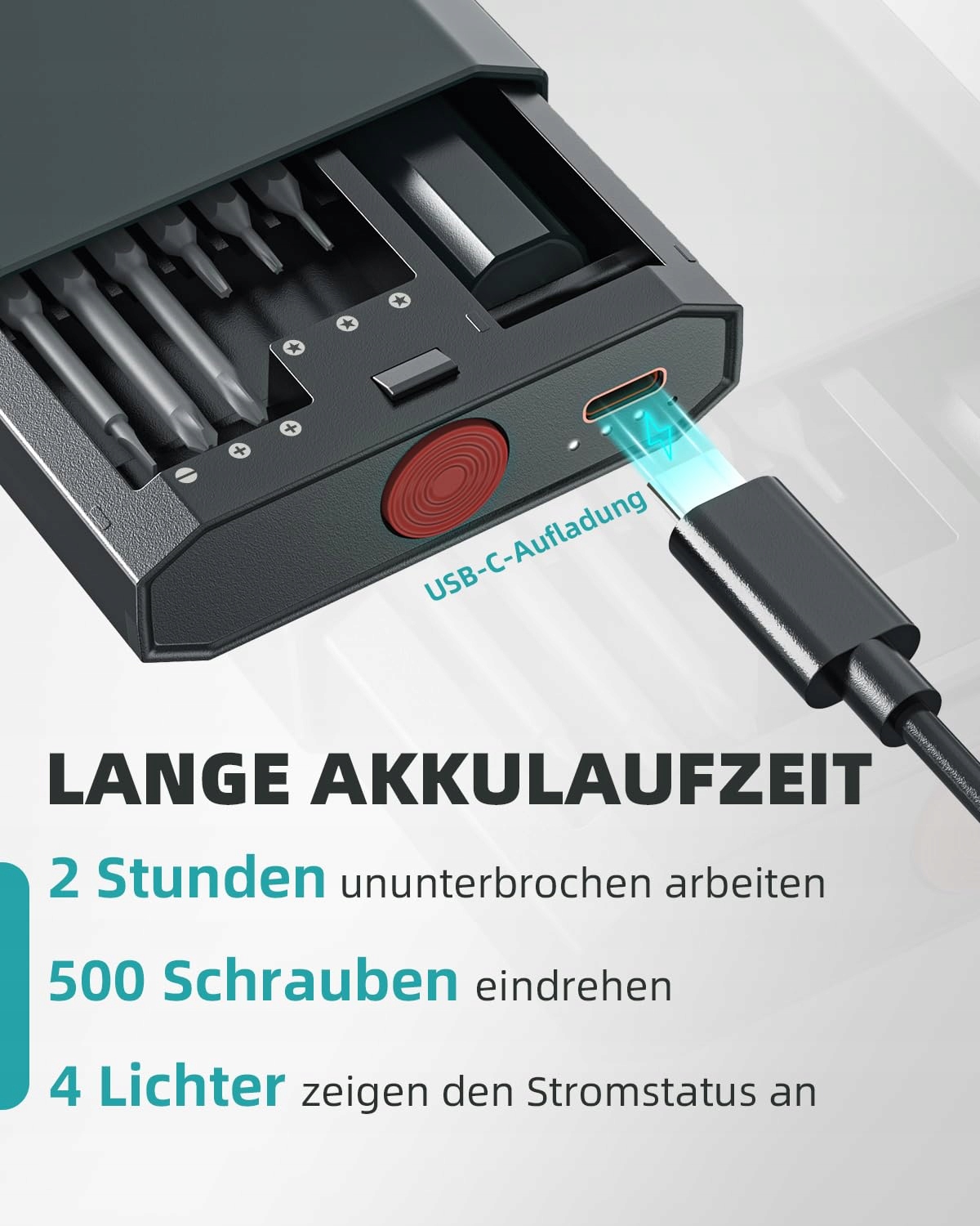 【Mocna żywotność akumulatora】 Mini wkrętarka elektryczna ma wbudowany akumulator 350 mAh i może pracować nieprzerwanie przez 2-3 godziny, aby dokręcić 500 śrub dla Ciebie. Ładowana jest bezpośrednio przez port typu C na zewnątrz walizki, co ma na celu wydłużenie żywotności wkrętarki. Silny silnik obraca się z prędkością do 200 obr/min, co sprawia, że Twoja praca jest bardziej efektywna