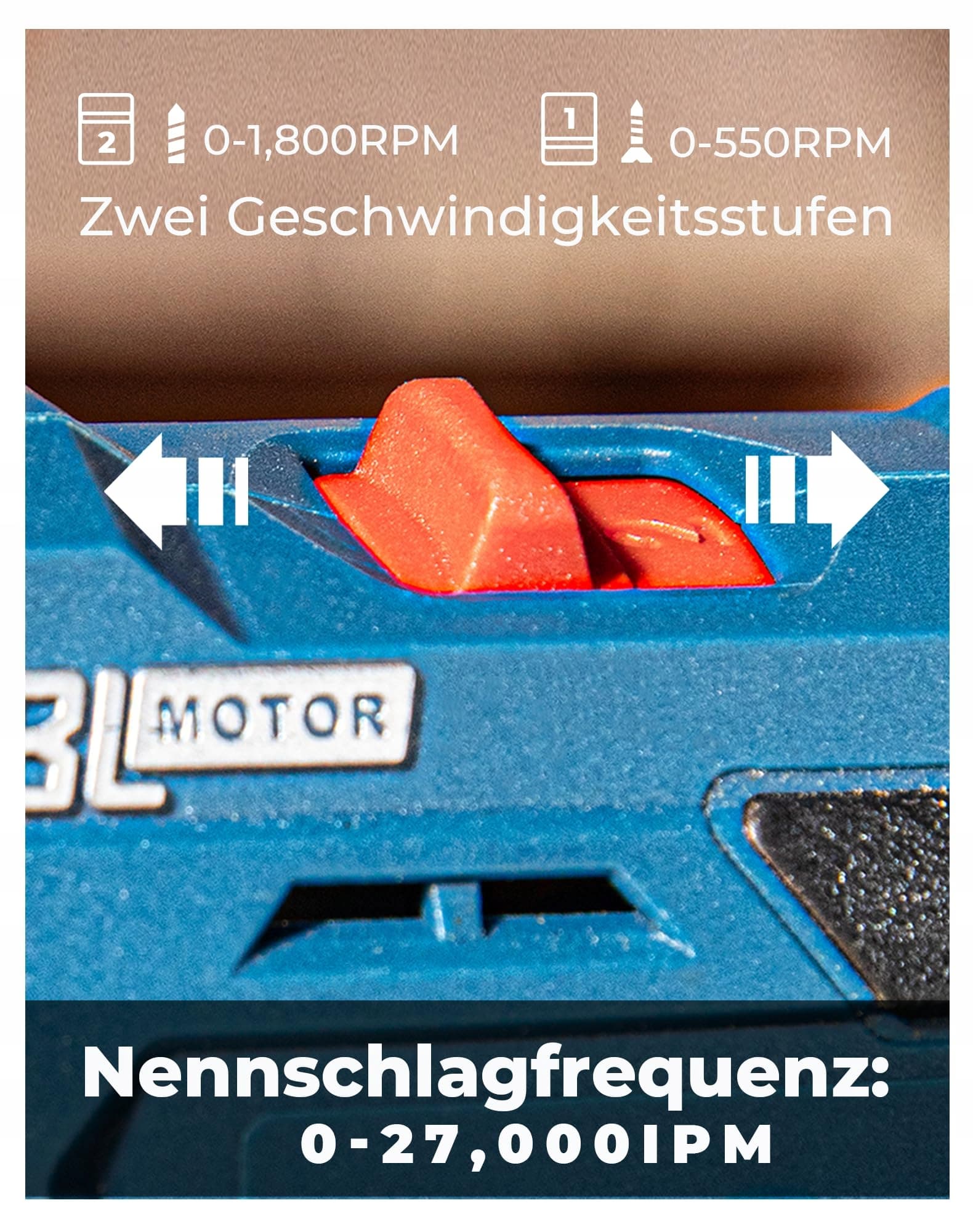 Dwie regulacje prędkości: Wiertarka udarowa oferuje prędkość obrotową na biegu jałowym: 0-550 RPM/0-1.800 RPM i nominalną częstotliwość udarów: 0-27.000 IPM dla precyzyjniejszej pracy podczas wiercenia i wkręcania.