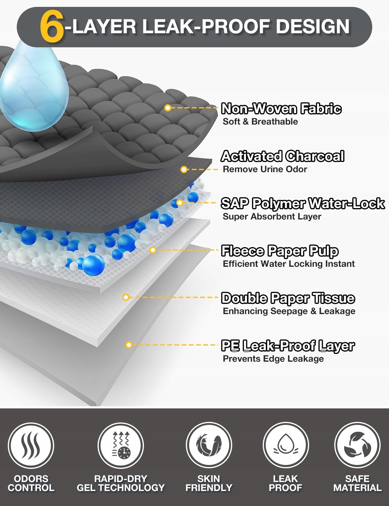 💧[Szybkie schnięcie] Maty do sikania dla psów z 5 warstwami mają super chłonny rdzeń, który szybciej wchłania płyn. Chłonne rdzenie mat treningowych dla psów są ułożone w kształcie plastra miodu, aby szybciej wchłaniać mocz i zapobiegać jego gromadzeniu się na powierzchni.