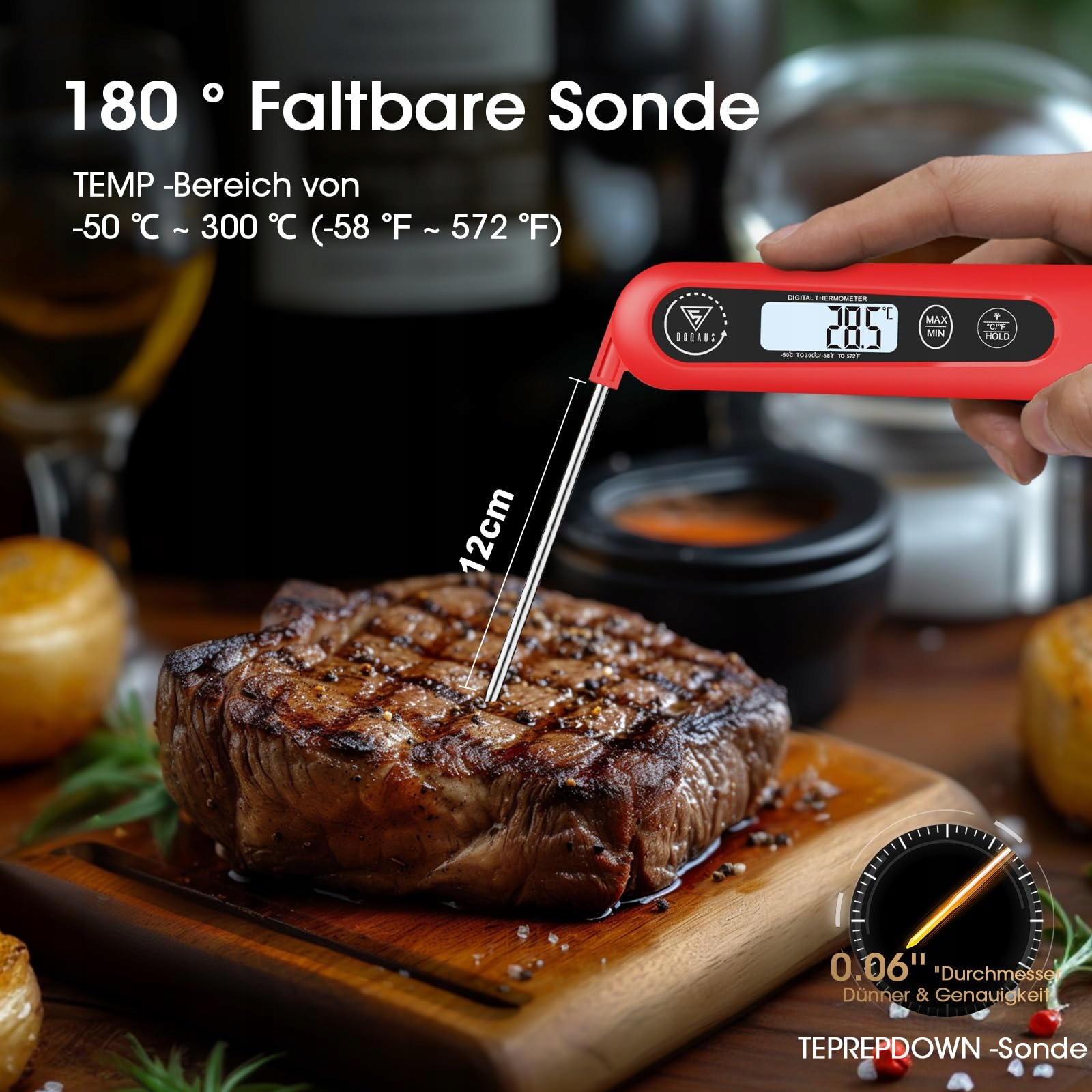 DOQAUS Termometr Cyfrowy Do Mięsa z Długą Sondą BBQ