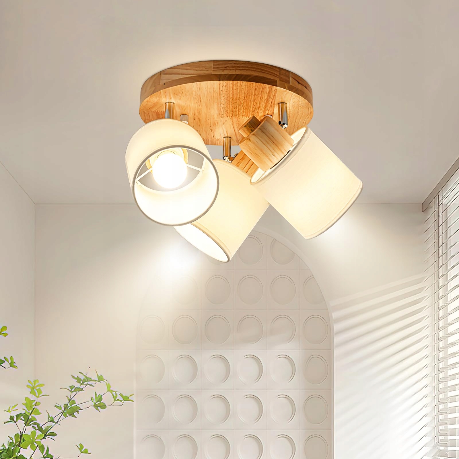 Doughelec Lampa sufitowa reflektor 3-płomienna drewno - Okrągła lampa sufitowa reflektor do salonu w stylu vintage E14 obracana lampa sufitowa ścienna MAX 40W do sypialni kuchni korytarza, bez źródła światła