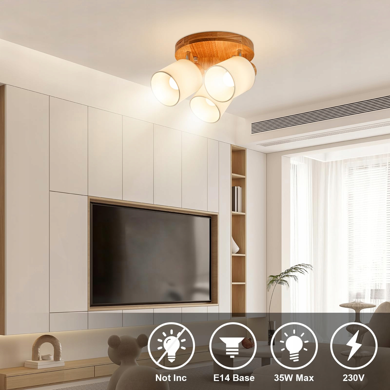 DOUGHELEC Lampa Sufitowa 3-Punktowa Drewniana Vintage E14 Do Salonu