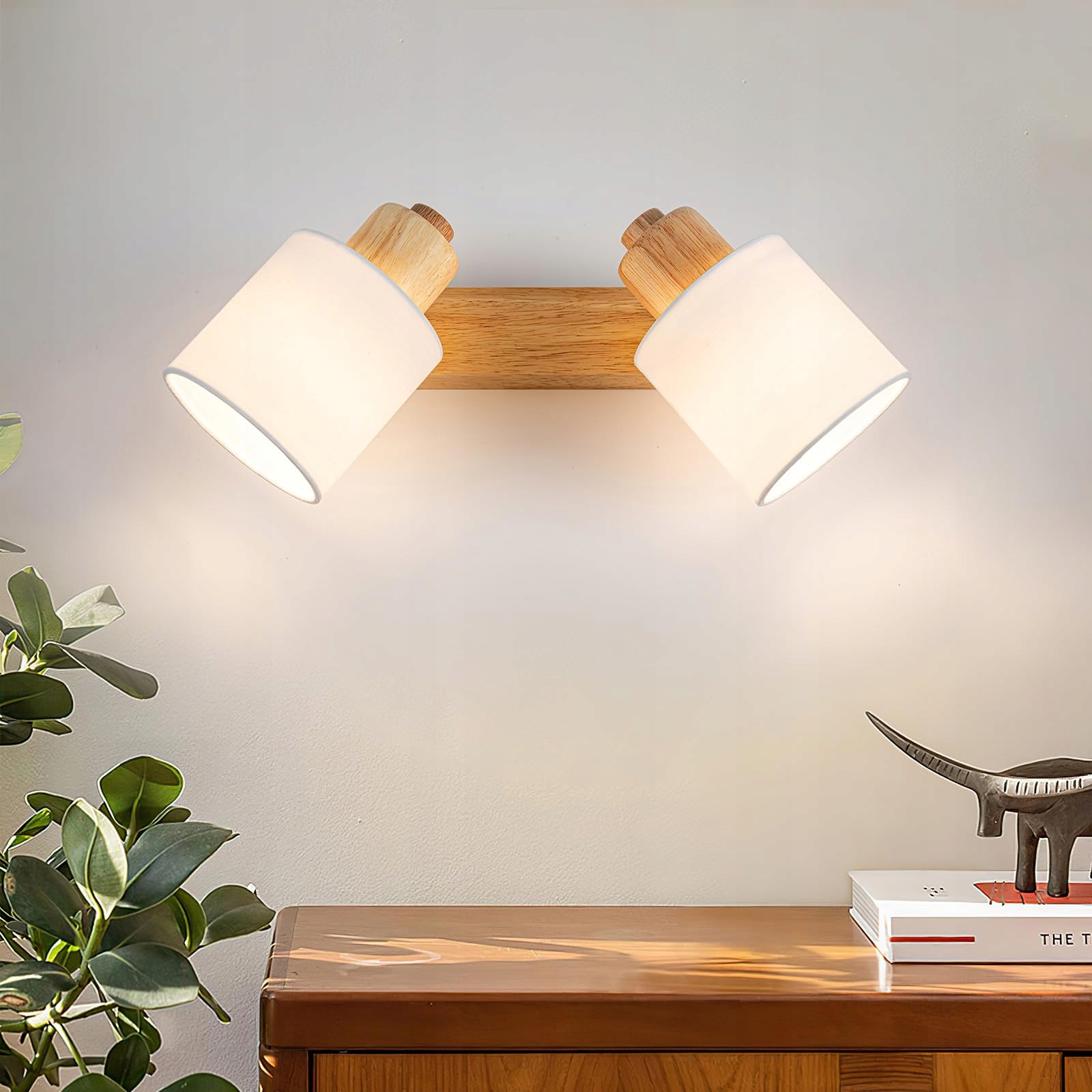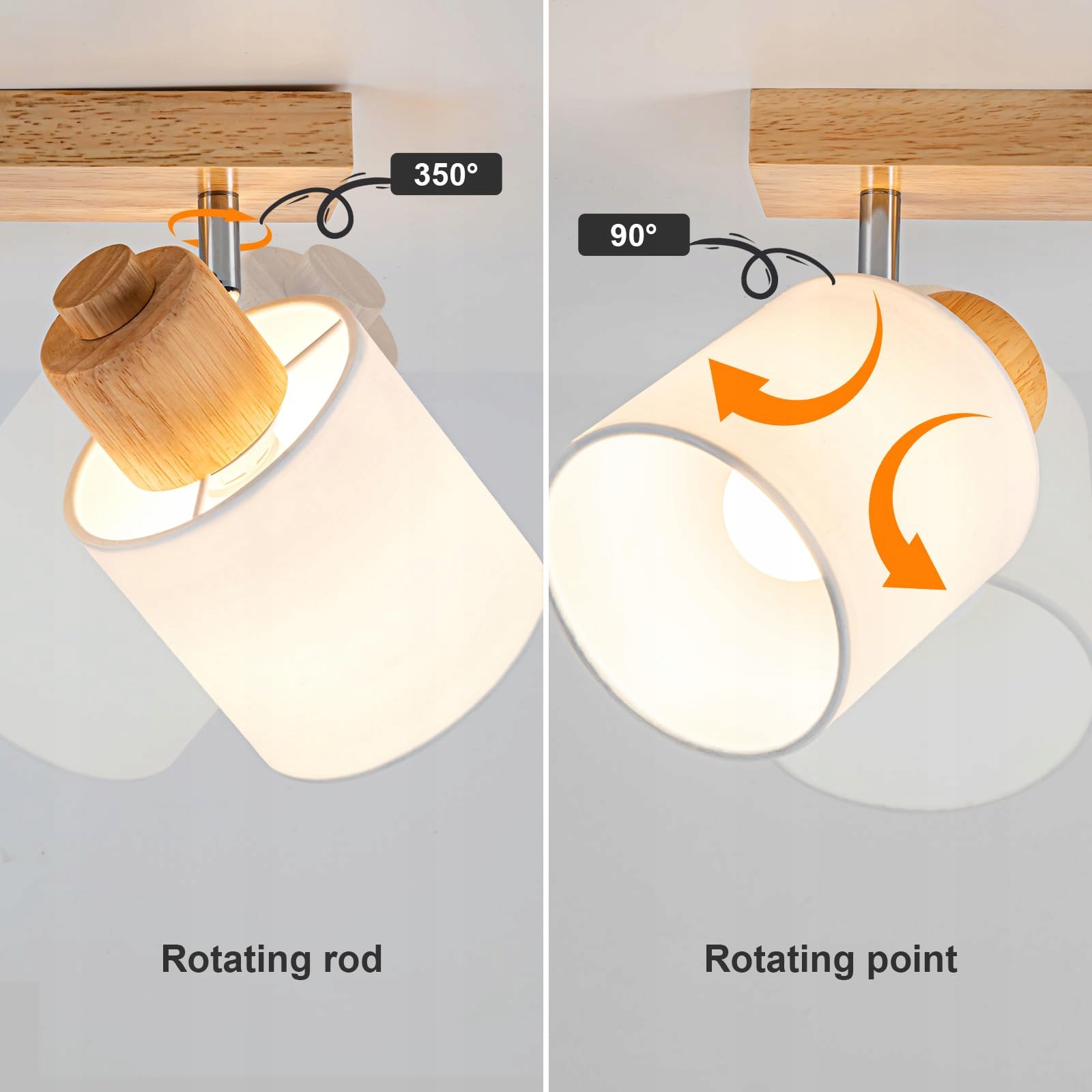 Doughelec Lampa sufitowa 2-punktowa - Lampa sufitowa z drewna, reflektor vintage E14, obracana 350°, lampa sufitowa, lampa ścienna MAX30W, materiał do salonu, sypialni, kuchni, bez źródła światła
