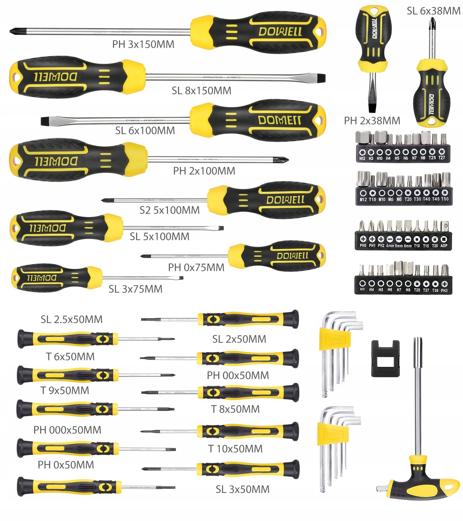 DOWELL Zestaw Magnetycznych Wkrętaków 108 Elementów Schlitz Phillips Torx