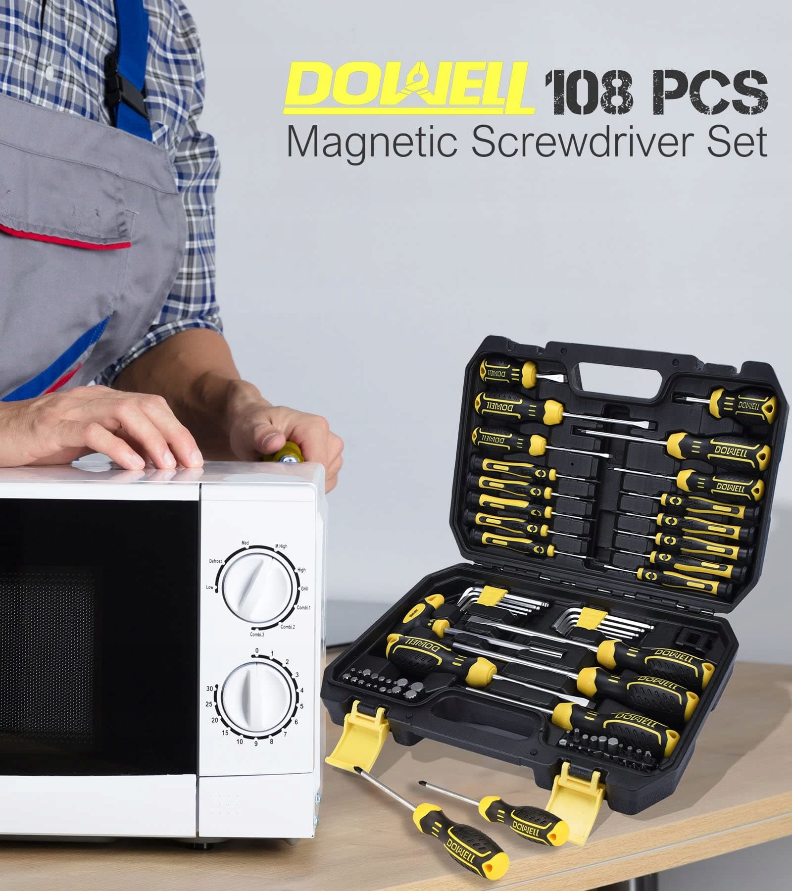 Zestaw wkrętaków DOWELL z magnesem, 108-elementowy, wkrętaki Stubby, mini wkrętaki precyzyjne, zestaw bitów