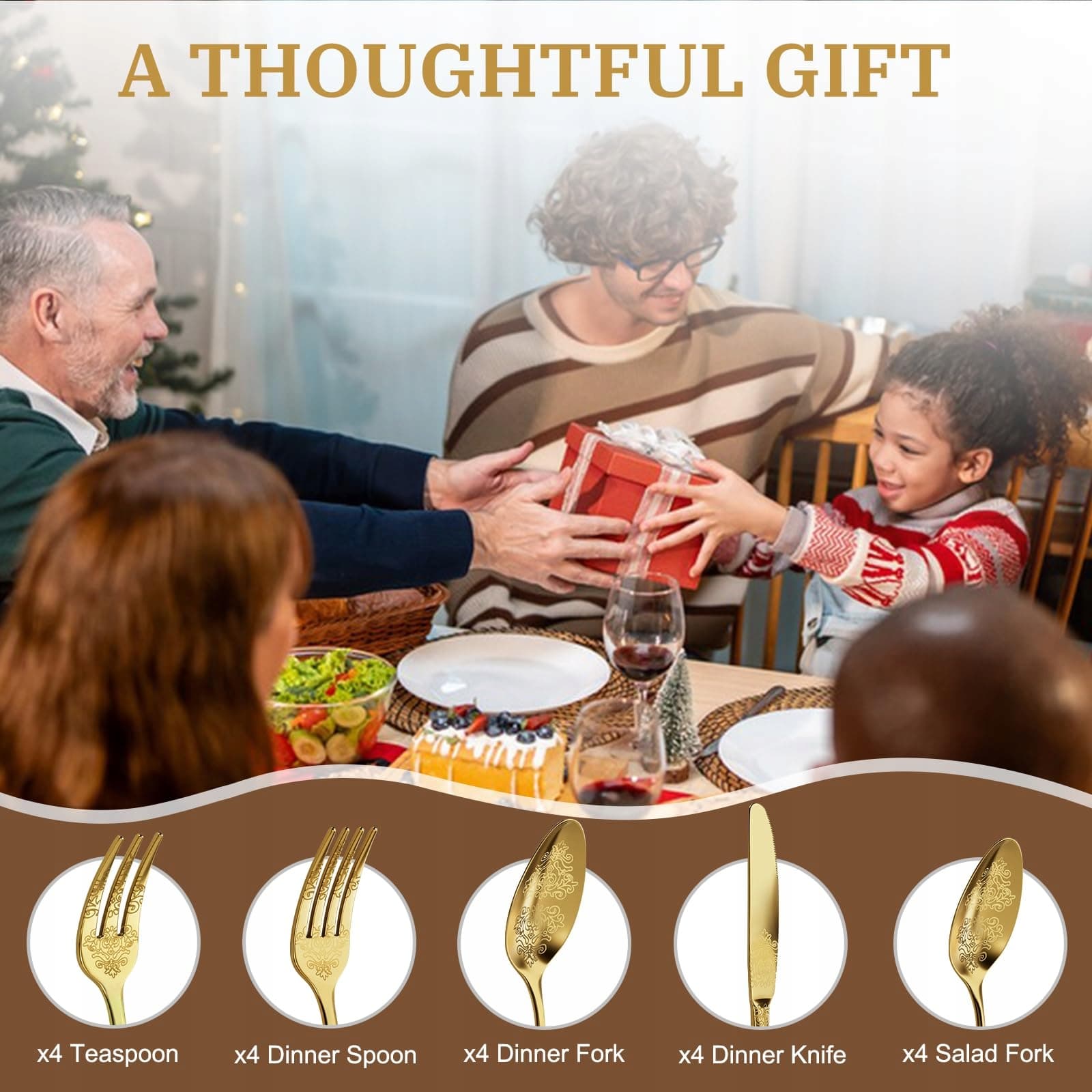 DRAGON RIOT Złoty Zestaw Sztućców 20 Elementów Stal Nierdzewna Dla 4 Osób