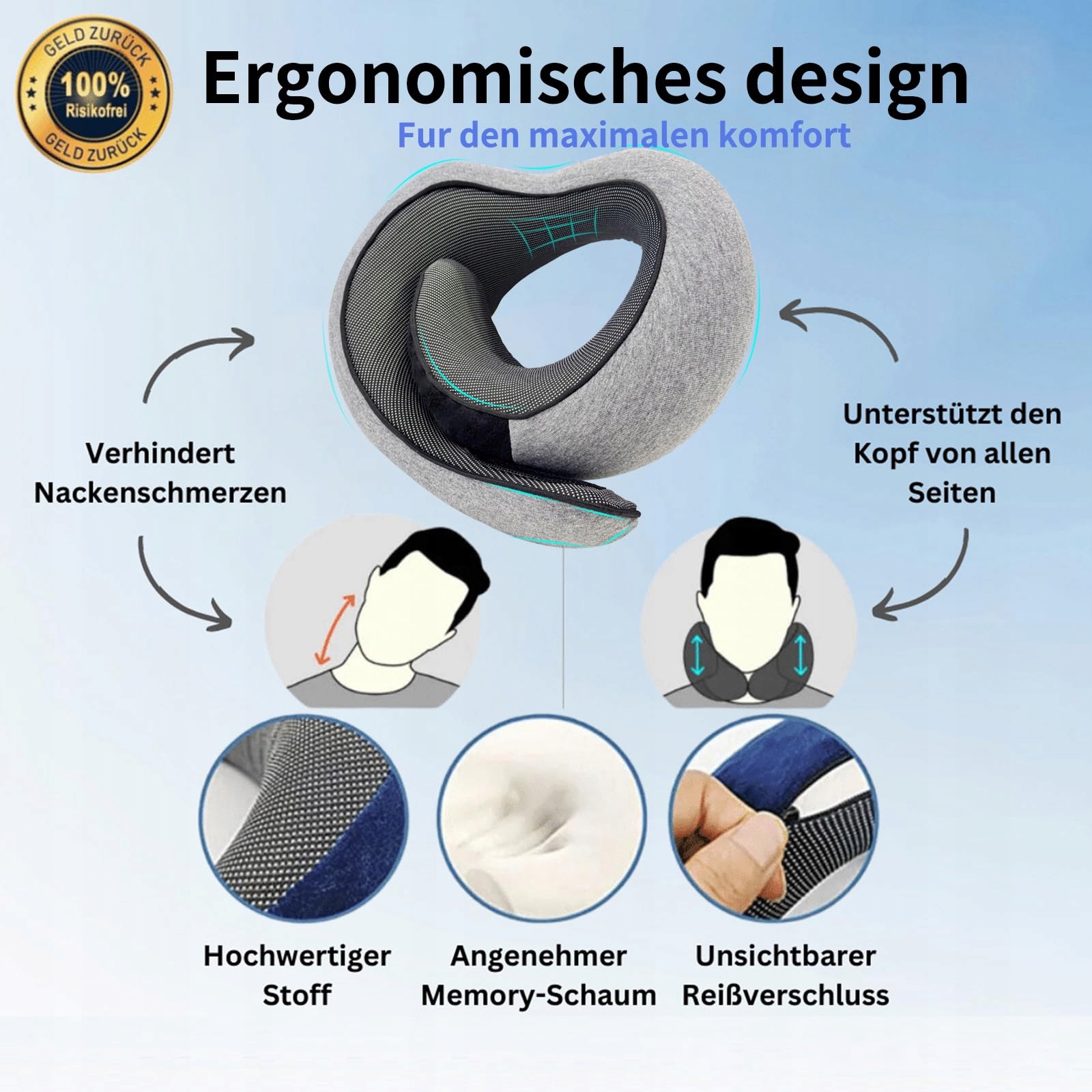 【Zaprojektowana do podróży】: Poduszka podróżna do samolotu ma aerodynamiczny kształt, który skutecznie podtrzymuje pochylanie szyi do przodu. 360° trójwymiarowa ochrona dla Twojej szyi, która idealnie dopasowuje się do jej kształtu i zapewnia skuteczne odciążenie oraz relaks podczas długich podróży.
