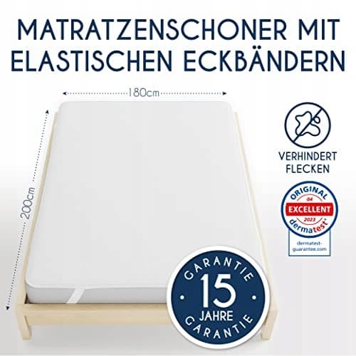 OCHRANIACZ NA MATERAC 100% WODOODPORNY I ODDYCHAJĄCY - Pokrowiec na materac jest nieprzemakalny i skutecznie odpycha wilgoć, kurz, plamy, pot, mocz i inne płyny: wydłuż żywotność swojego materaca i oszczędzaj na dłuższą metę! 180 x 200 cm odnosi się do rozmiaru materaca, wymiary ochraniacza mogą się różnić o kilka centymetrów, aby lepiej dopasować się do poduszki.