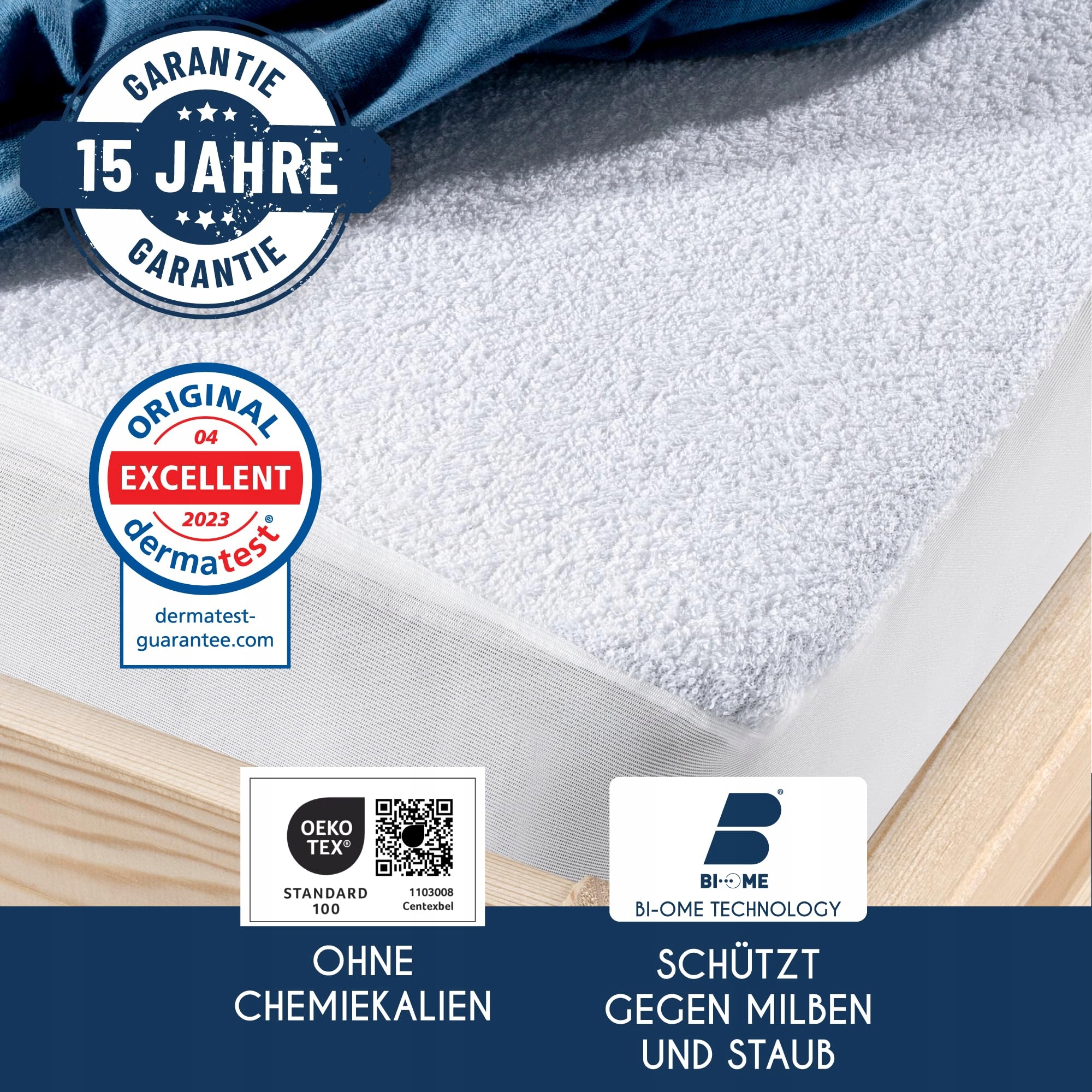 WODOODPORNY: Membrana poliuretanowa naszego pokrowca na materac Molton zapewnia doskonałą ochronę przed wilgocią, skutecznie blokując wszystkie płyny, takie jak pot, mocz czy płyny ustrojowe, podczas gdy pokrowiec na materac swobodnie przepuszcza powietrze. 70 x 200 cm odnosi się do rozmiaru materaca, wymiary ochrony mogą się różnić o kilka centymetrów, aby lepiej pasować do materaca.