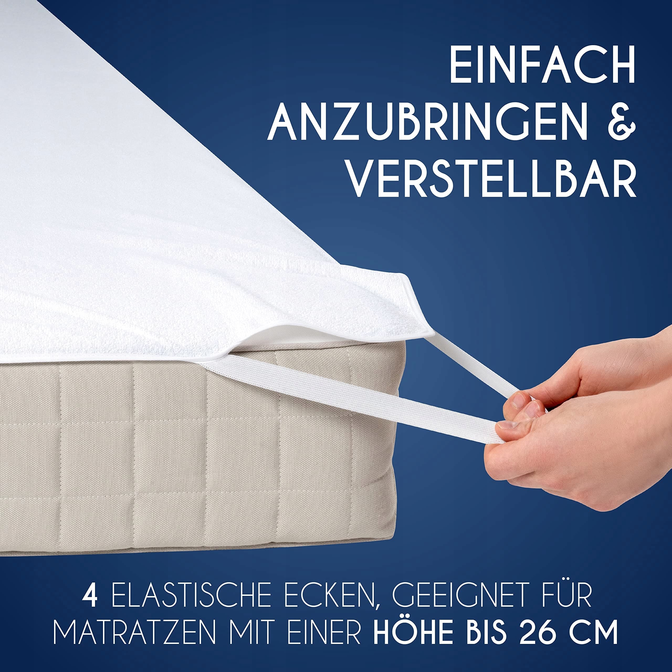 ŁATWE MOCOWANIE NA TWOIM ŁÓŻKU - Dzięki szerokim i stabilnym gumowym taśmom w 4 rogach wodoodpornej nakładki na łóżko można ją w mgnieniu oka zamocować na materacu o wymiarach 80 x 190 cm z maksymalną wysokością krawędzi 28 cm: Skuteczna ochrona materaca w niskiej cenie