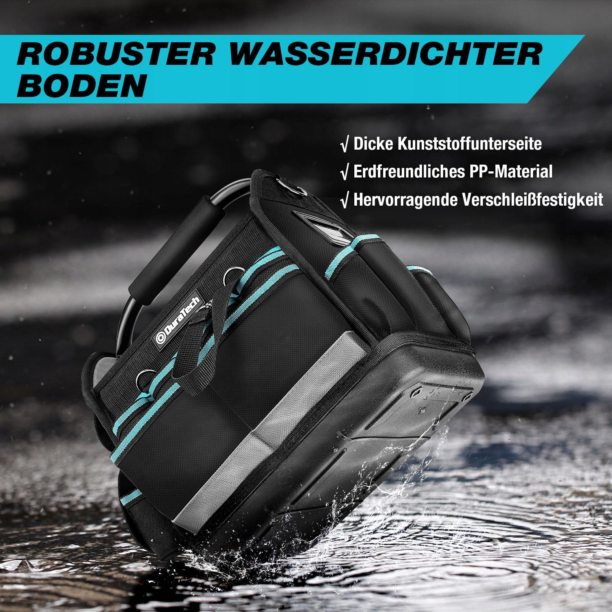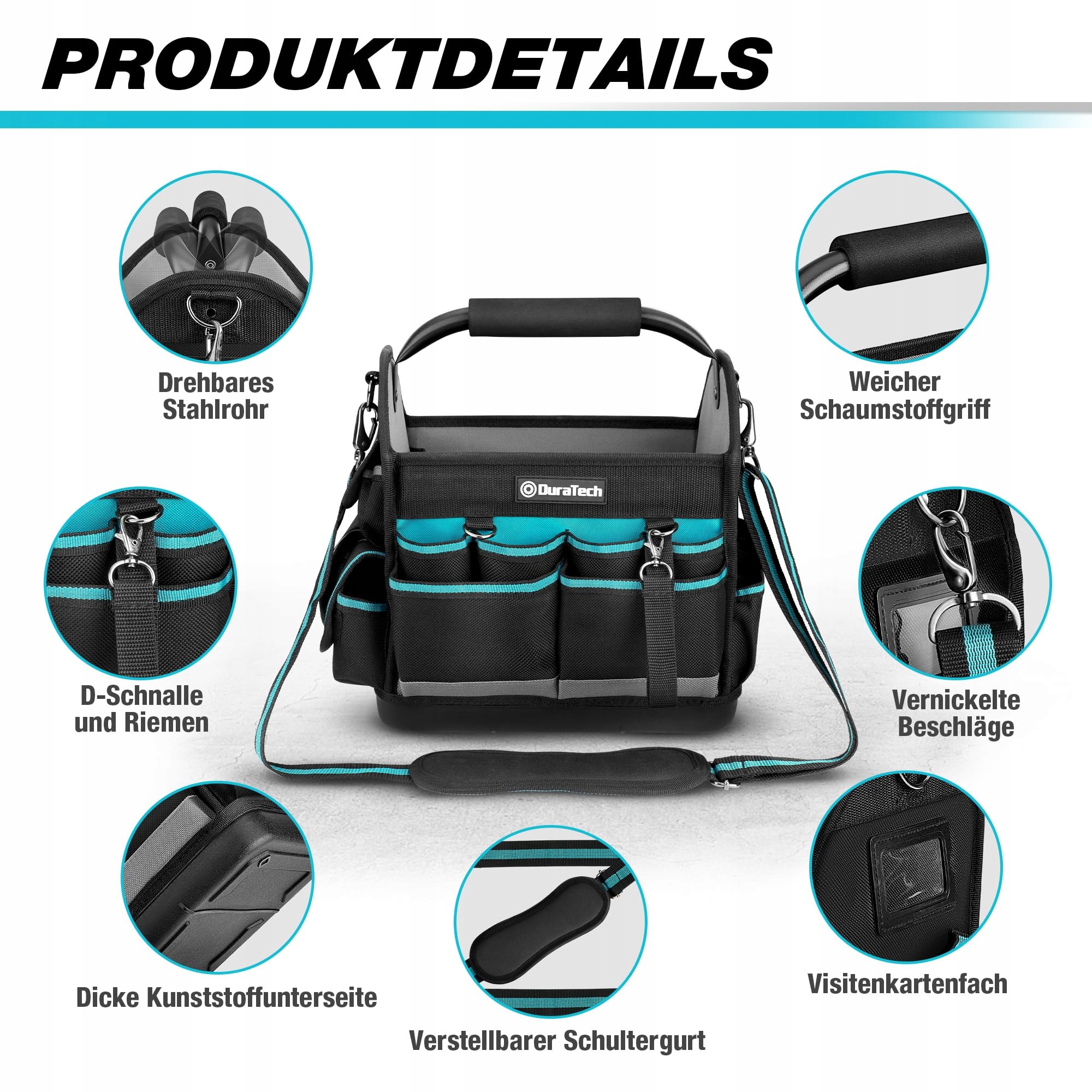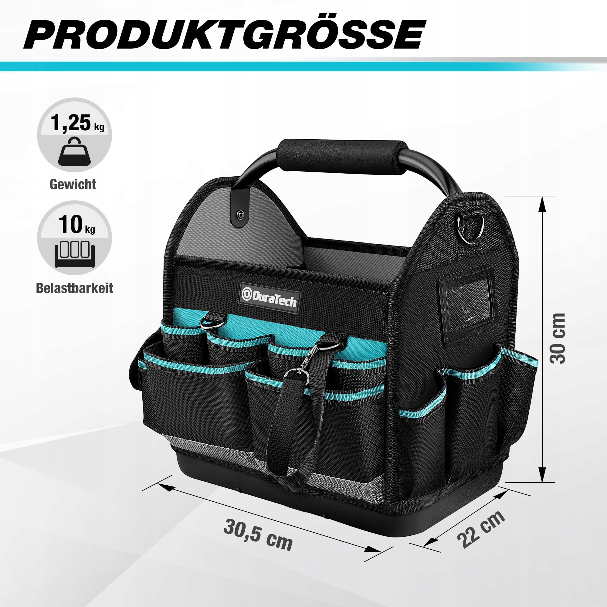 DURATECH Profi torba narzędziowa dla elektryków, solidna torba narzędziowa 30,5 cm z wodoodpornym dnem i dużym otworem, z 900D poliestru, duża pojemność, z rurą stalową i regulowanym paskiem na ramię