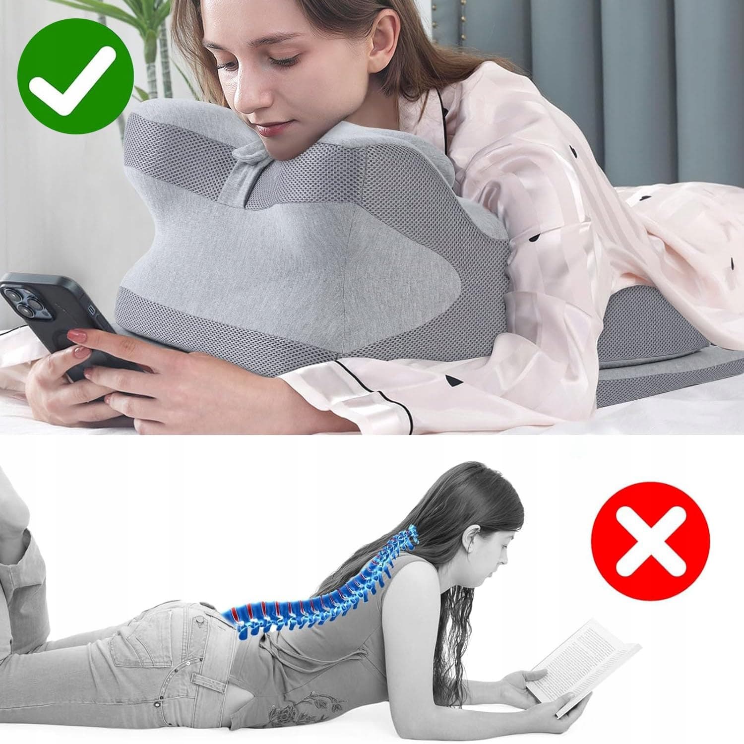 【Ergonomiczny design】Nasza klinowa poduszka naśladuje kształt litery S kręgosłupa i dopasowuje się do kręgosłupa oraz talii, zapewniając pełen komfort i relaks całego ciała. Może być używana do regulacji pozycji poduszki, aby spełnić potrzeby osób siedzących i leżących podczas czytania, łagodząc zmęczenie w talii i szyi, zwłaszcza podczas czytania na leżąco