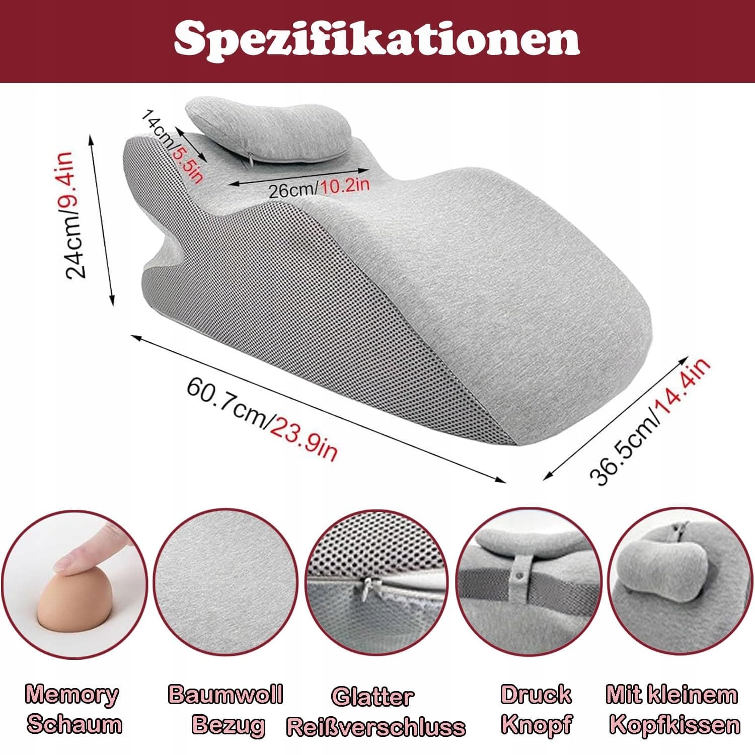 Duscdesp Klin poduszka do łóżka i sofy, ergonomiczna poduszka z pianki memory do czytania, poduszka ortopedyczna na plecy, szyję i nogi, poduszka przeciwrefluksowa z zdejmowanym pokrowcem do prania, do łóżka, sofy, siedzenia, spania, czytania