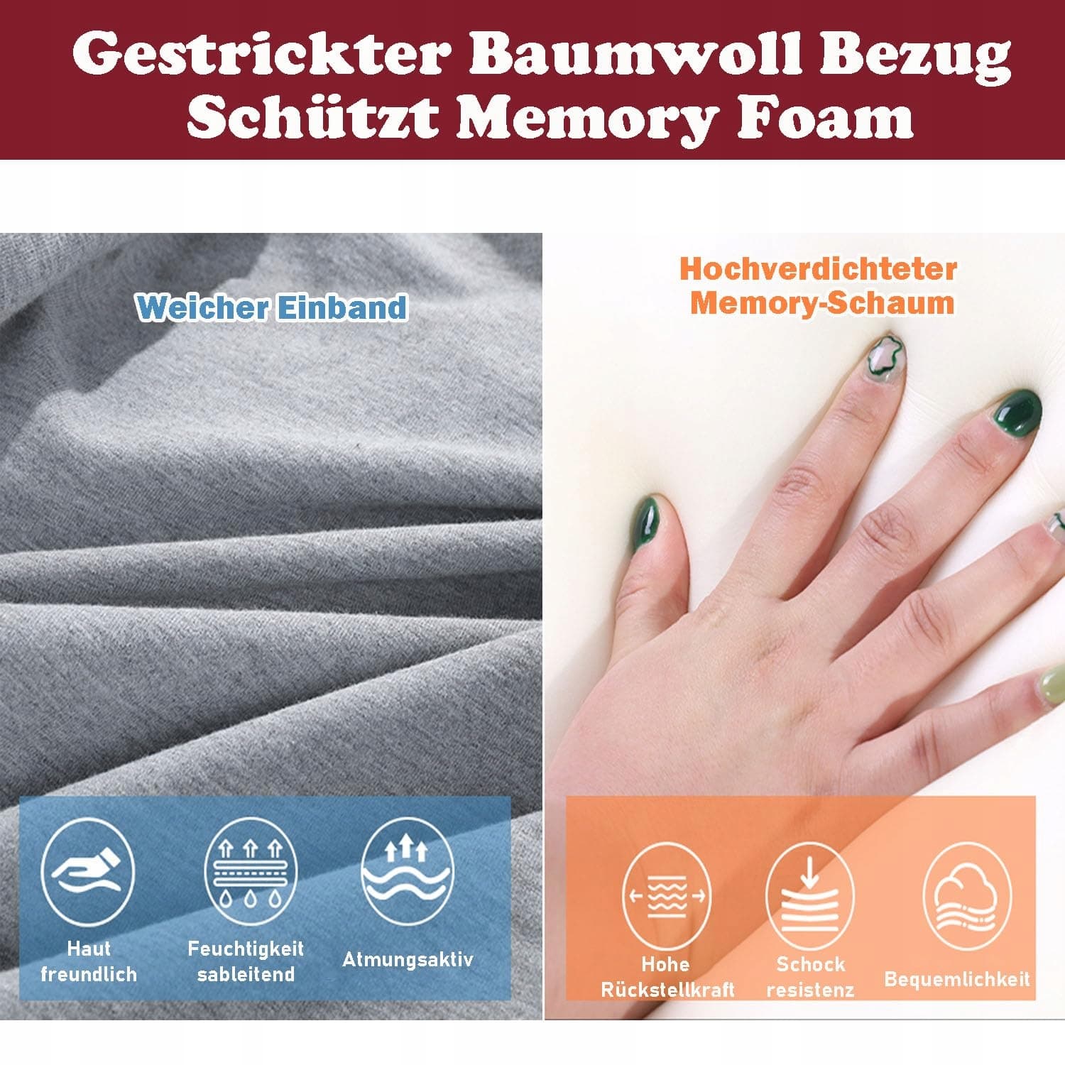 【Oddychający i zdejmowany pokrowiec】Dzianinowa warstwa powietrzna chroni rdzeń pianki, dzięki czemu podczas snu pozostajesz chłodny i odświeżony. Wyposażona w zdejmowany i nadający się do prania w pralce pokrowiec na zamek błyskawiczny, utrzymanie czystości tej poduszki jest proste
