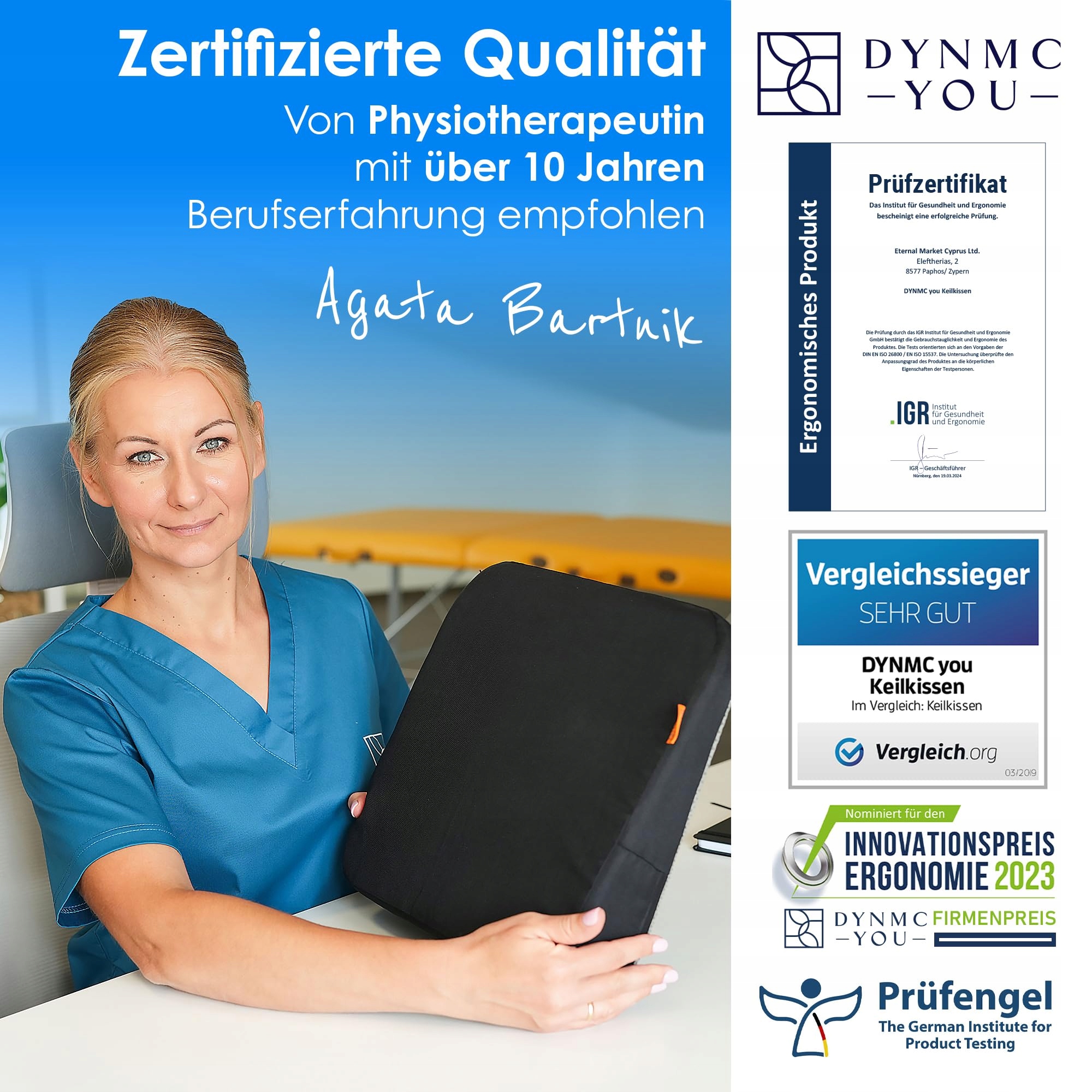 DYNMC poduszka klinowa - Test BARDZO DOBRY - Poduszka do siedzenia - Opracowana przez fizjoterapeutów - Ergonomiczna poduszka do biura - Podwyższenie dla dorosłych odciąża plecy i zwiększa komfort siedzenia