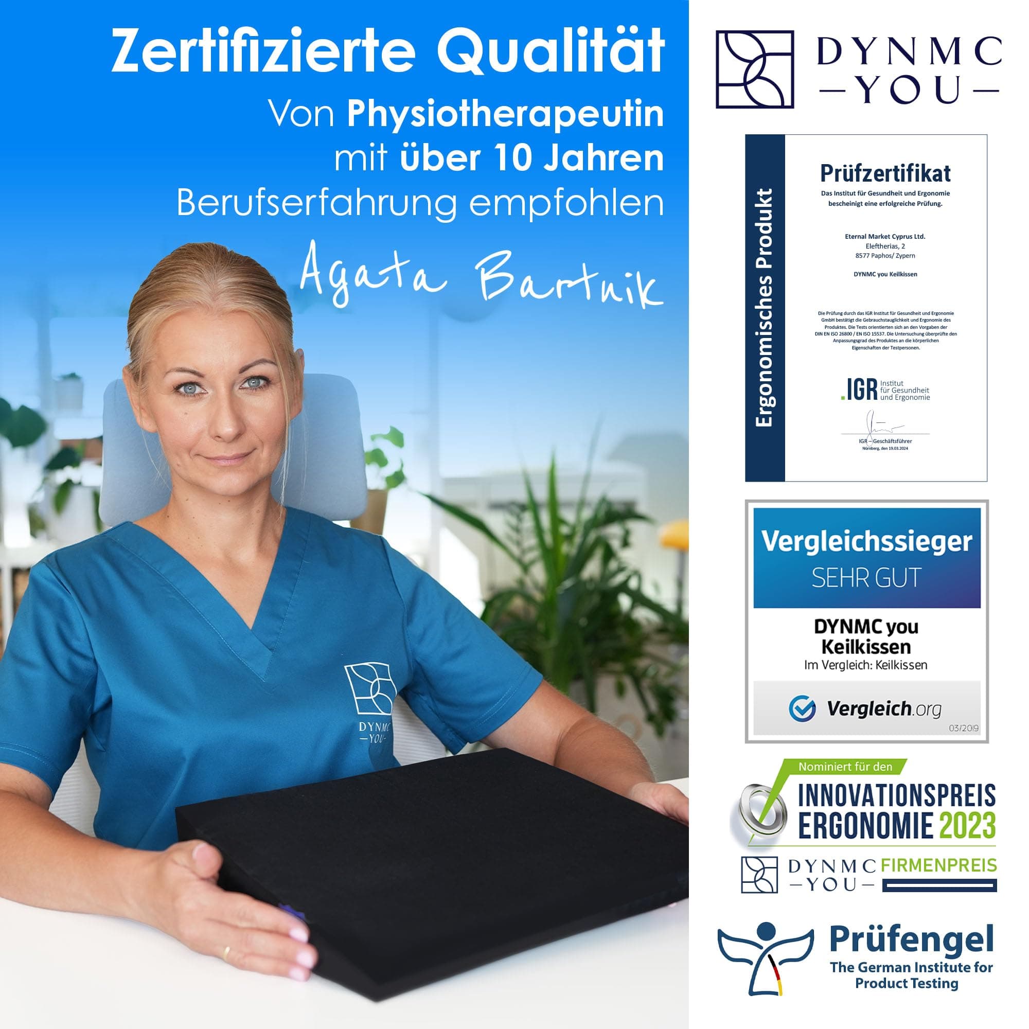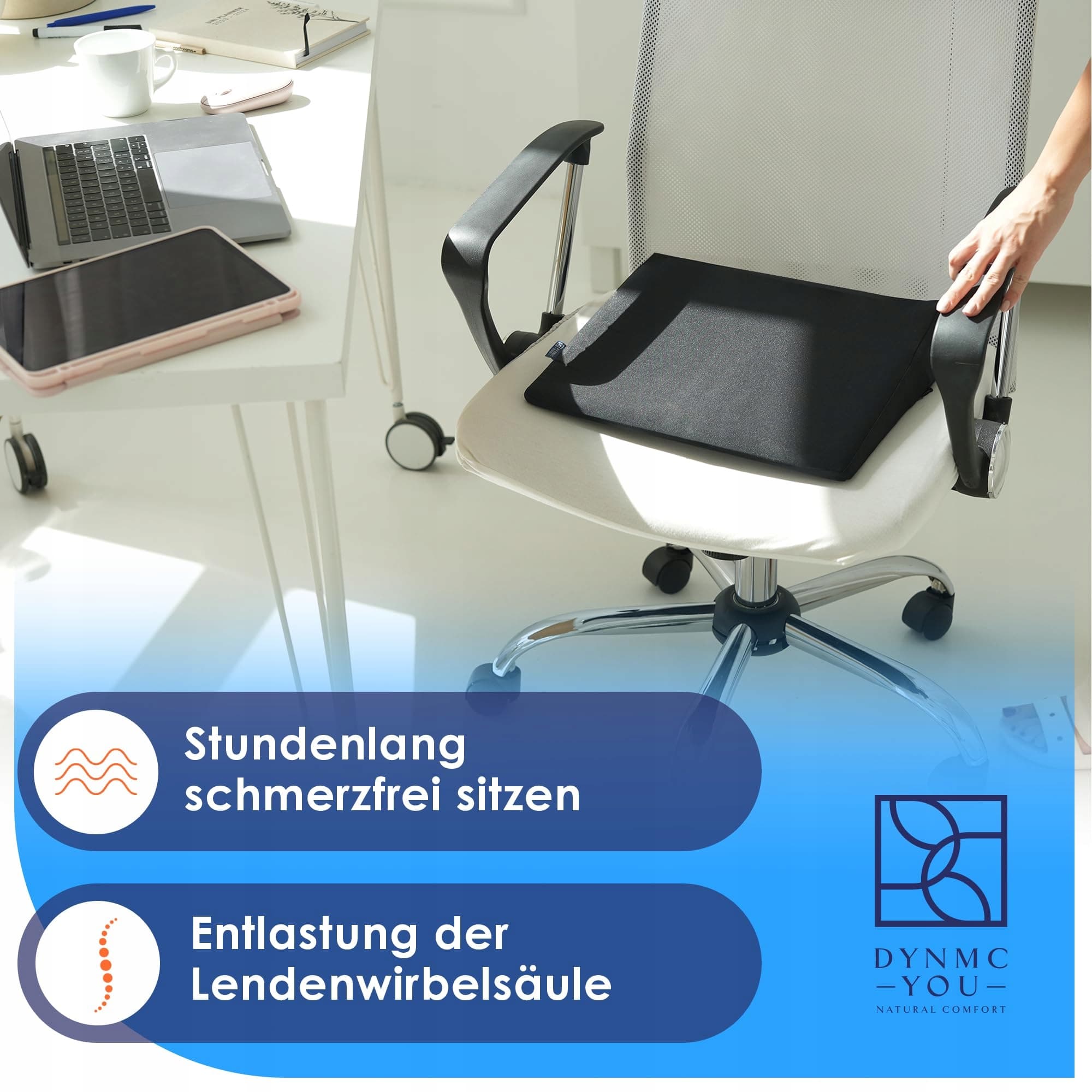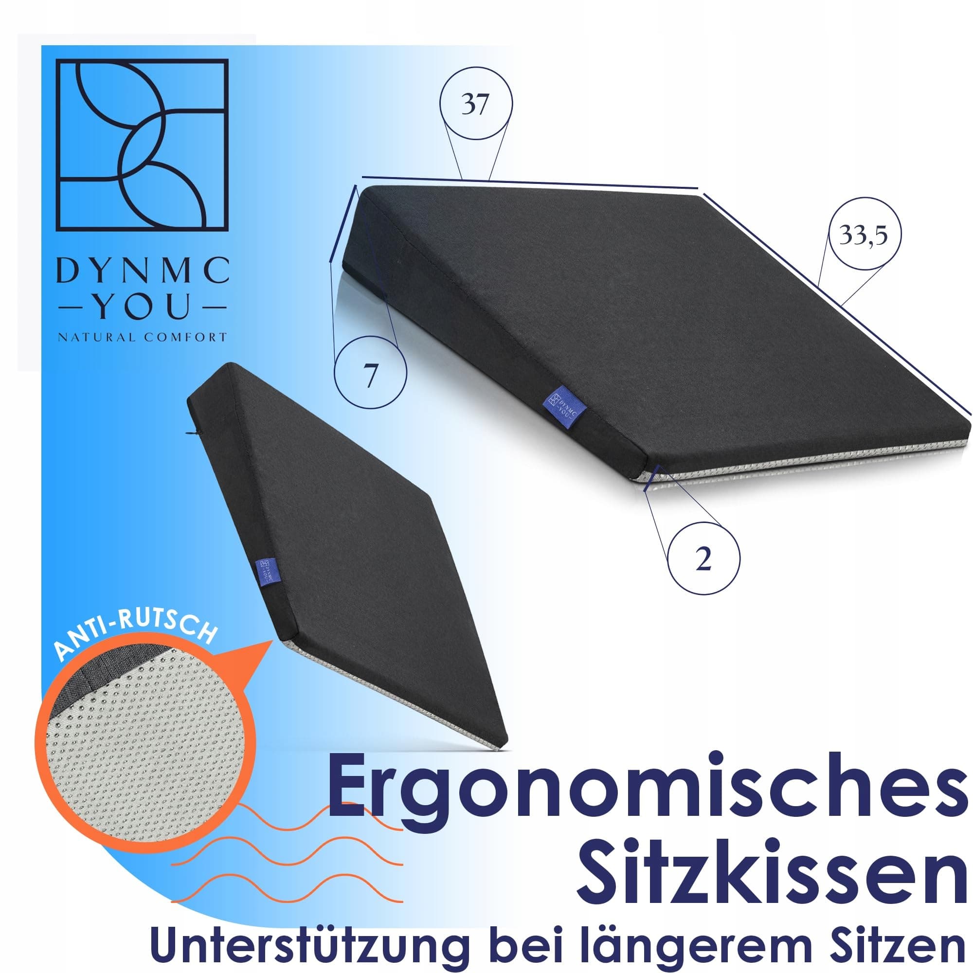 DYNMC you Keilkissen Stuhl - Test SEHR GUT - Sitzkissen Stuhl - Mit Physiotherapeuten Entwickelt - Ergonomisches Sitzkissen Bürostuhl - Sitzerhöhung Erwachsene Entlastet Rücken & Erhöht Sitzkomfort
