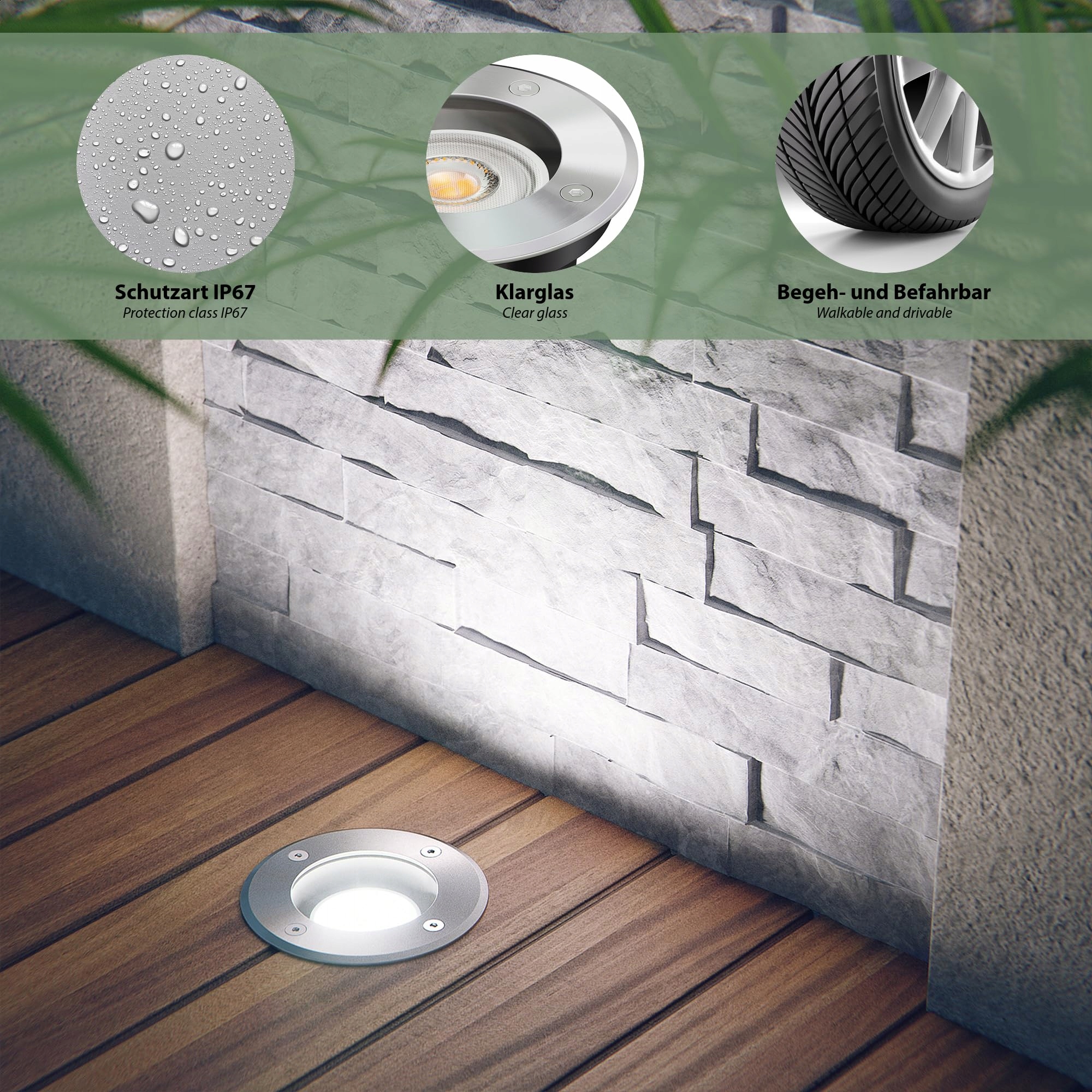 [Stopień ochrony IP67] - Oprawa wpuszczana jest idealnym rozwiązaniem do oświetlenia zewnętrznego. Odporna obudowa ze stali nierdzewnej chroni reflektor przed czasowym zanurzeniem w wodzie i jest całkowicie pyłoszczelna. Dzięki temu jest optymalnie zabezpieczona przed wpływem warunków atmosferycznych w różnych porach roku.