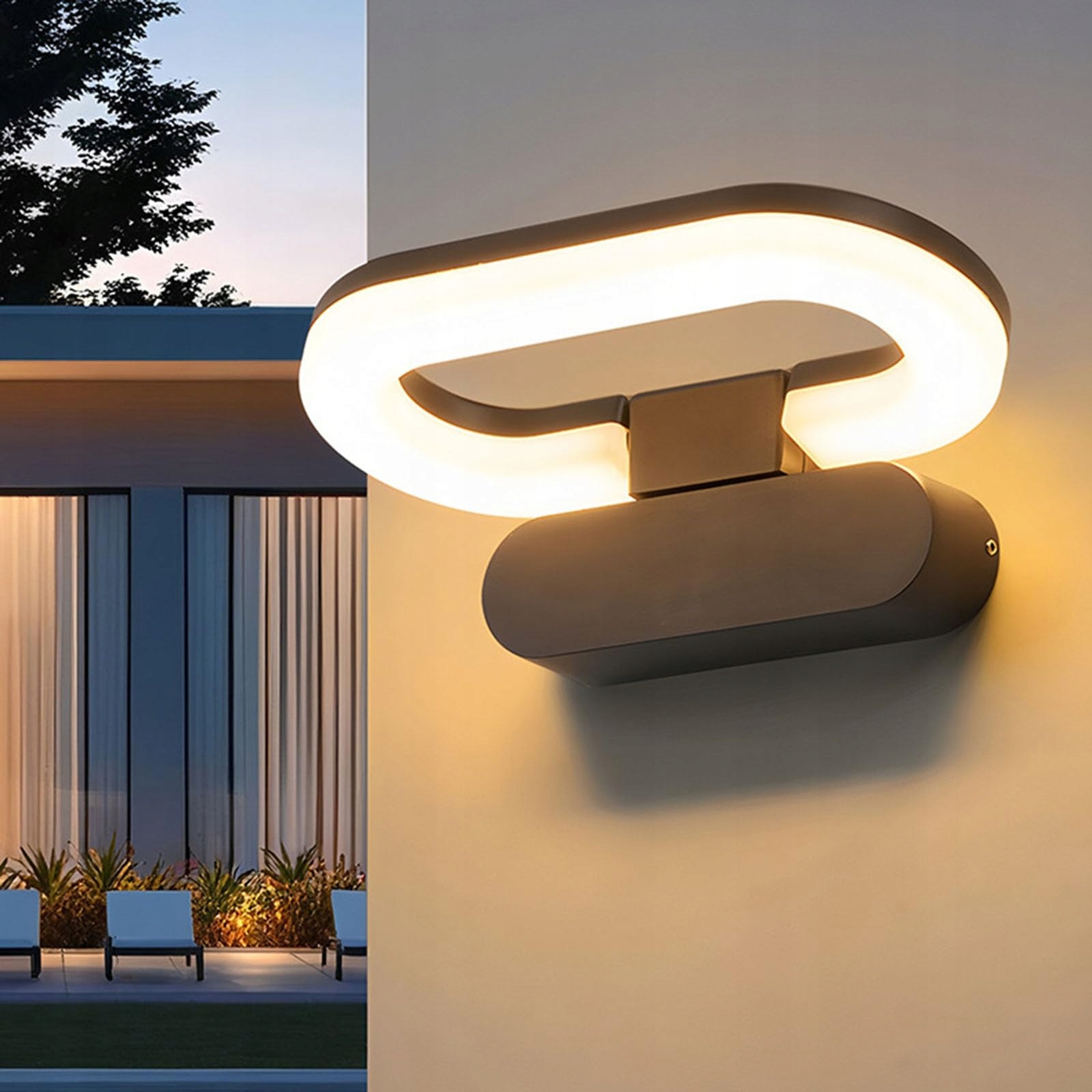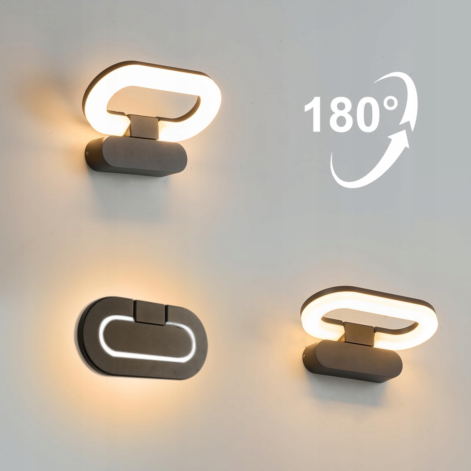 Dythwron Lampa zewnętrzna na ścianę, oświetlenie zewnętrzne ściany domu, wodoodporna IP65, z obracanym panelem LED, lampa ścienna na zewnątrz do ogrodu i tarasu, 18W ciepła biel 3000K