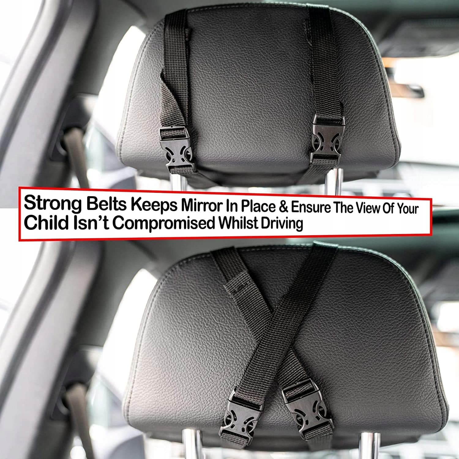 🎚️ELASTYCZNY I REGULOWANY PAS: Lusterko ma dwa paski, które można dostosować do każdego zagłówka, dzięki czemu stabilna baza nie przesuwa się. Wschodnie zapięcia i paski zapobiegają ruchom i huśtaniu się lusterka.