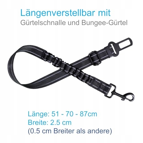 EASERIA Pas Bezpieczeństwa Dla Psów Premium Elastyczny Regulowany 50-87cm Czarny