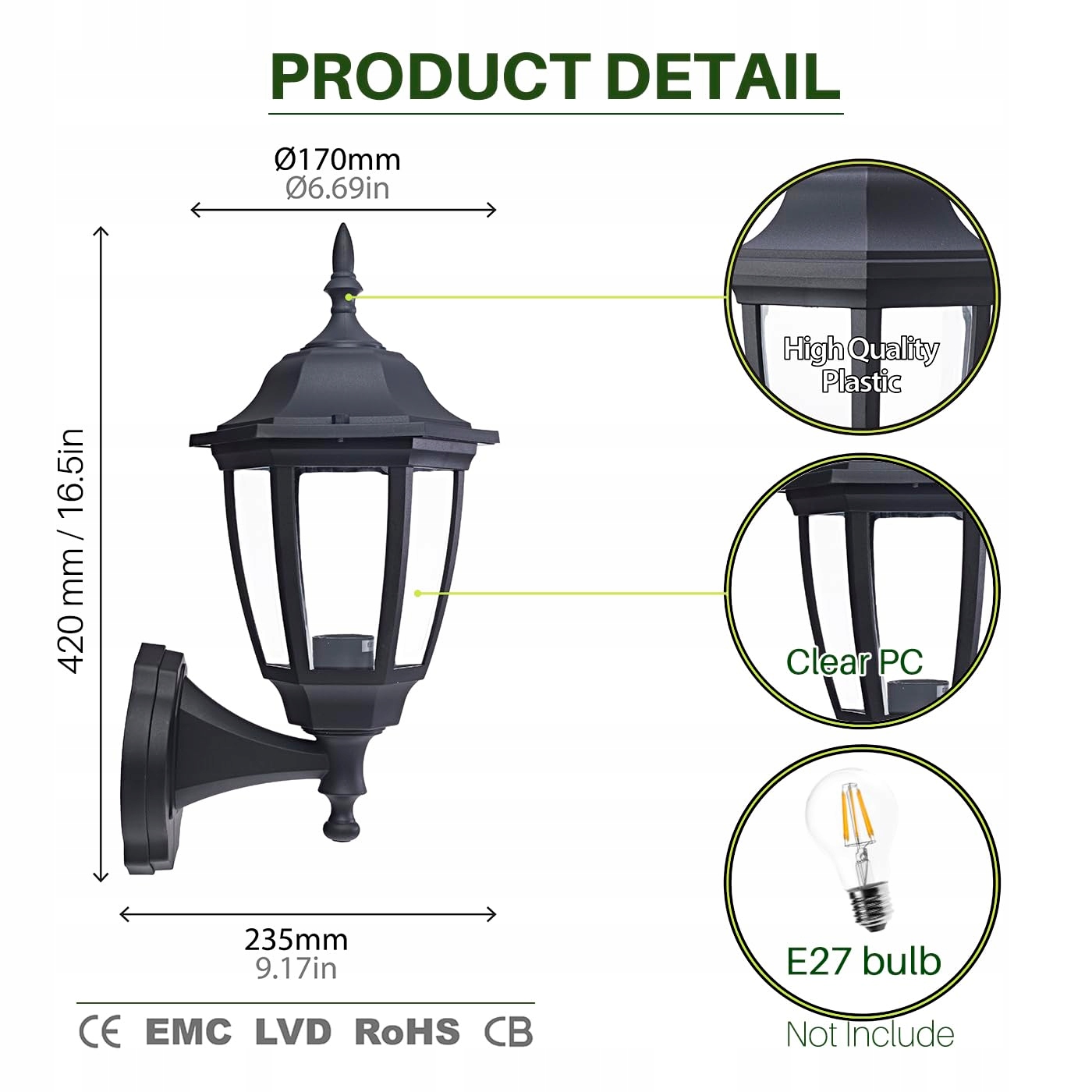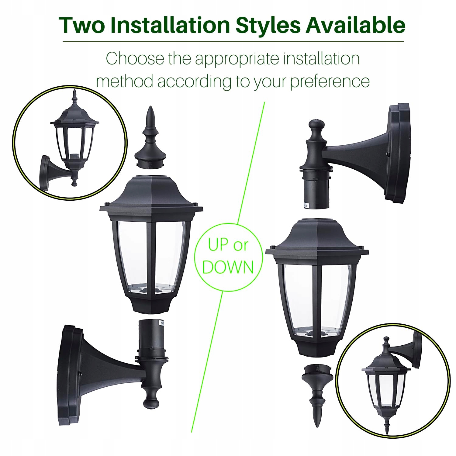 【Klasyczny design】Ten kinkiet wyróżnia się klasycznym, nostalgicznym wzornictwem. Obudowa jest wykończona matową czernią – prosta i wszechstronna w łączeniu. Idealnie nadaje się do stworzenia ciepłej i jasnej atmosfery na werandach, w garażach, na tarasach, korytarzach i w ogrodzie.
