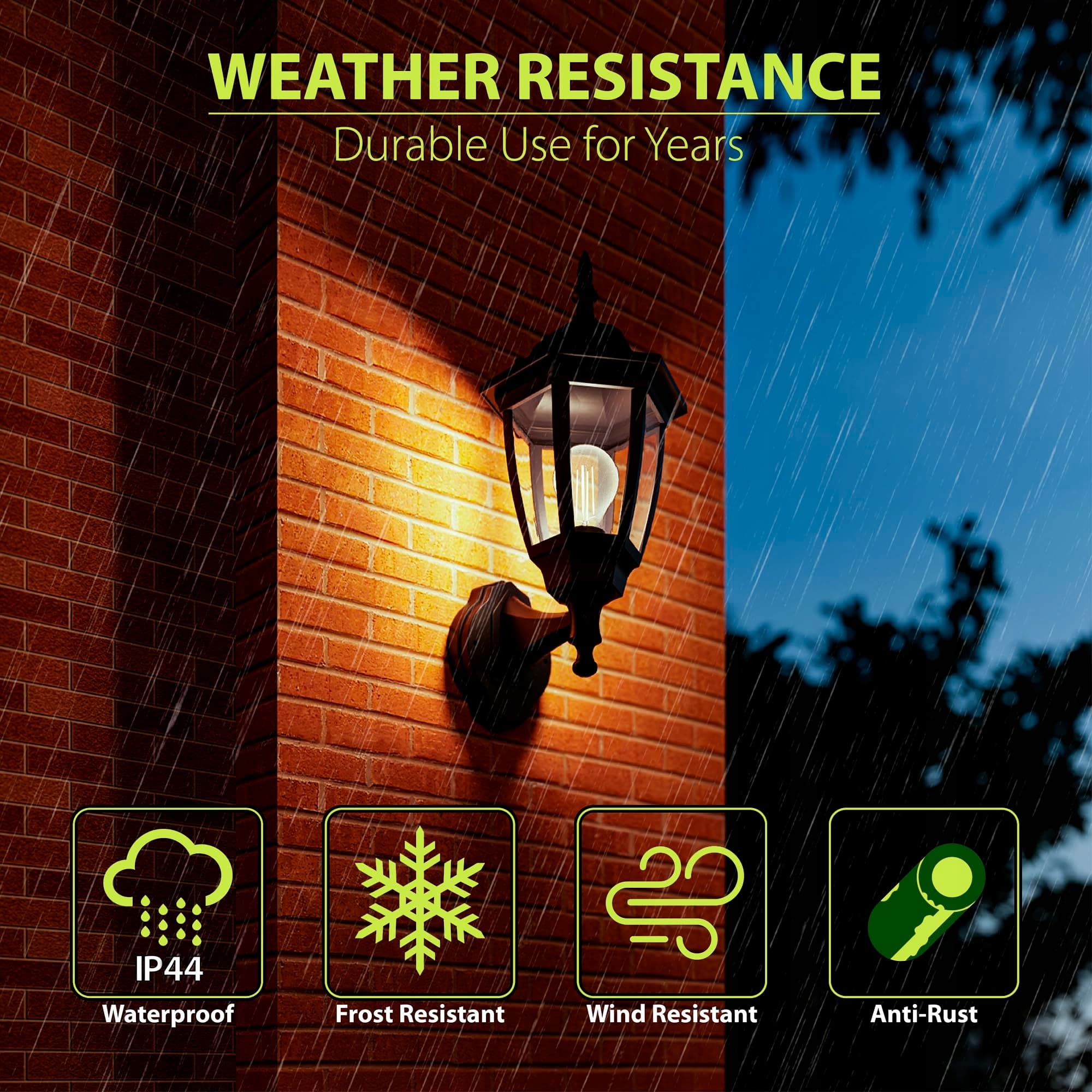 【Solidna i trwała】Obudowa kinkietu wykonana jest z wysokiej jakości, odpornego na korozję tworzywa sztucznego. Klosz lampy wykonany jest z wysoko przezroczystego akrylu, co zapewnia długą żywotność. Lampa jest idealna do użytku na zewnątrz (IP44) i może być montowana pod osłoniętymi okapami dachowymi, na werandach, balkonach lub częściowo zadaszonych ścianach ogrodowych.